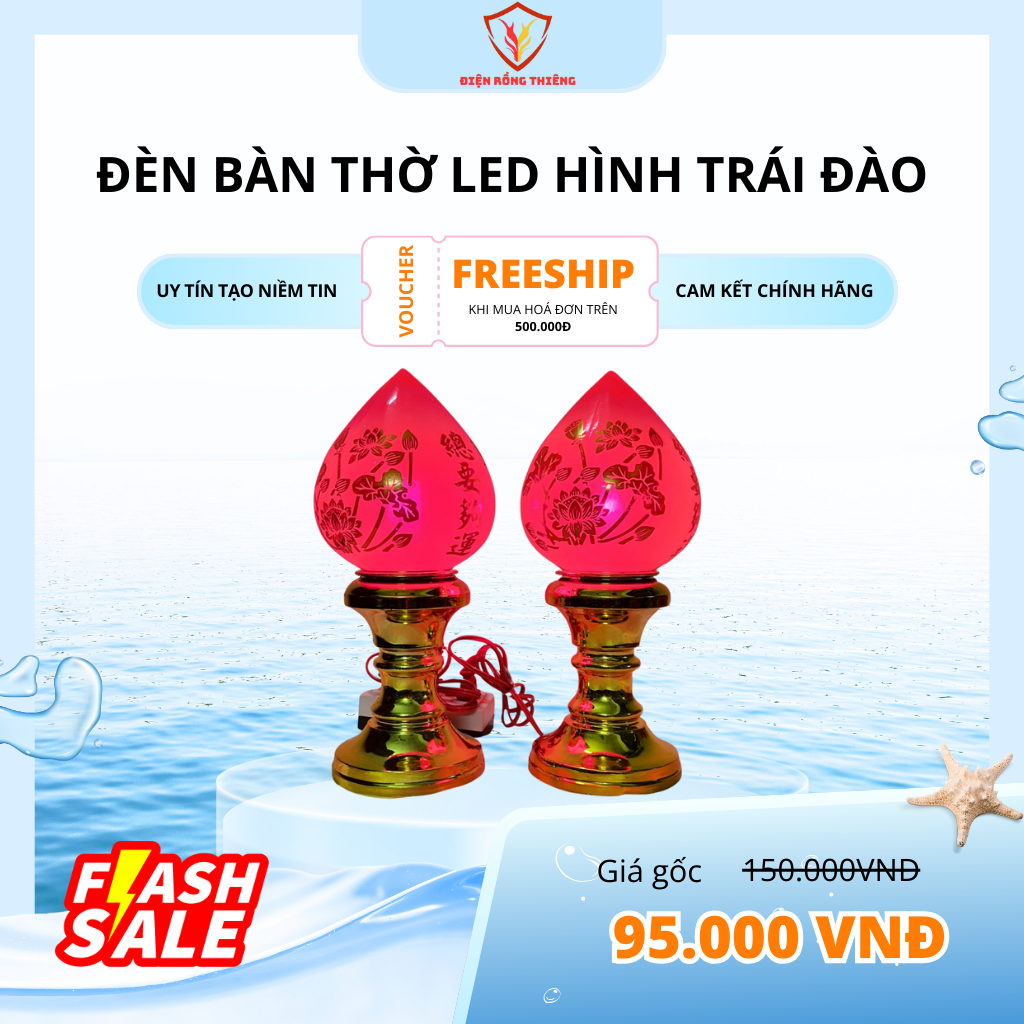 Đèn Bàn Thờ LED Hình Trái Đào – Ánh Sáng Vàng Ấm, Tôn Nghiêm Không Gian Thờ