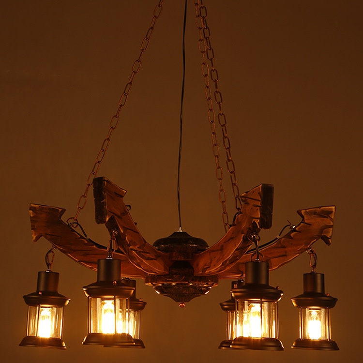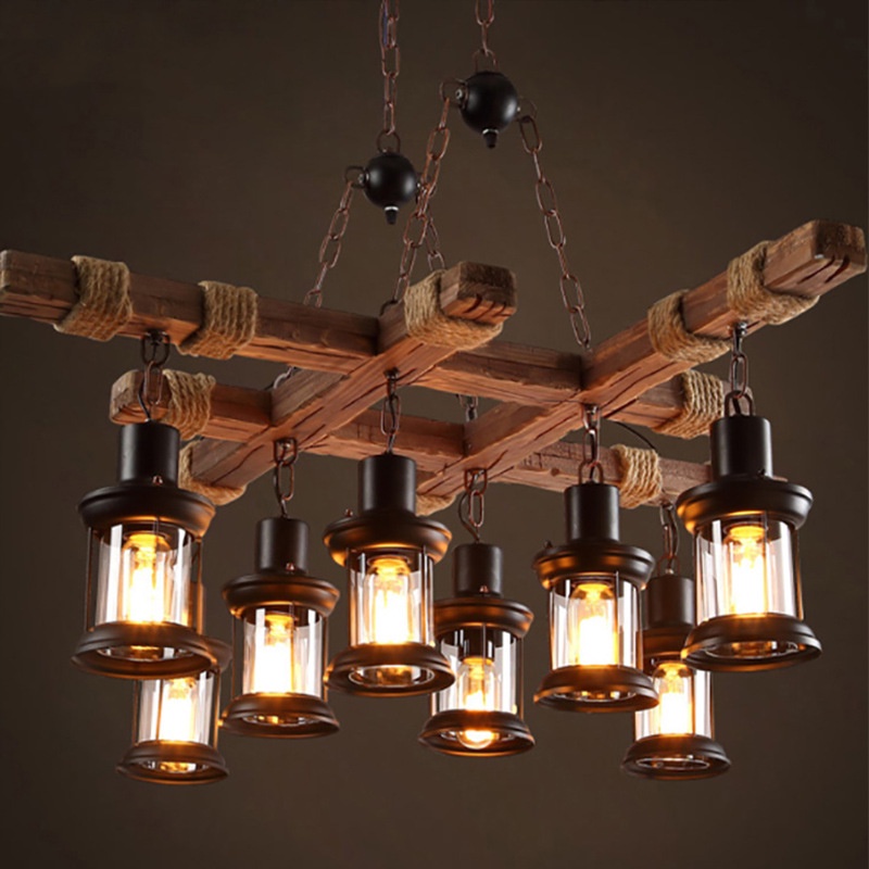 Đèn chùm, đèn gỗ thả trần phong cách cổ điển trang trí nhà cửa, khách sạn, nhà hàng