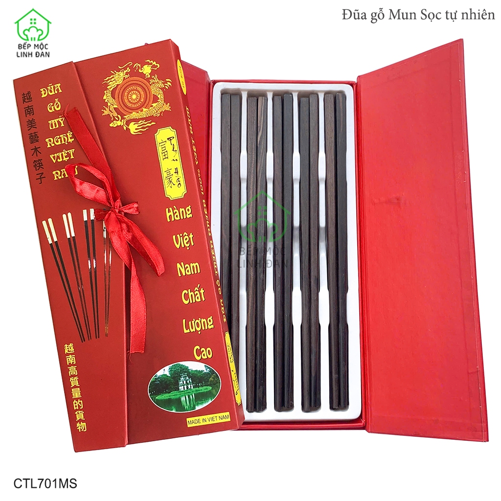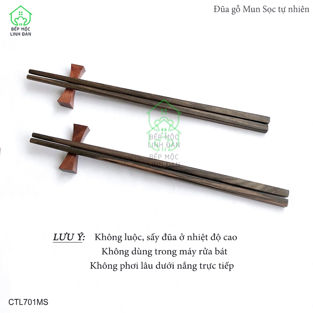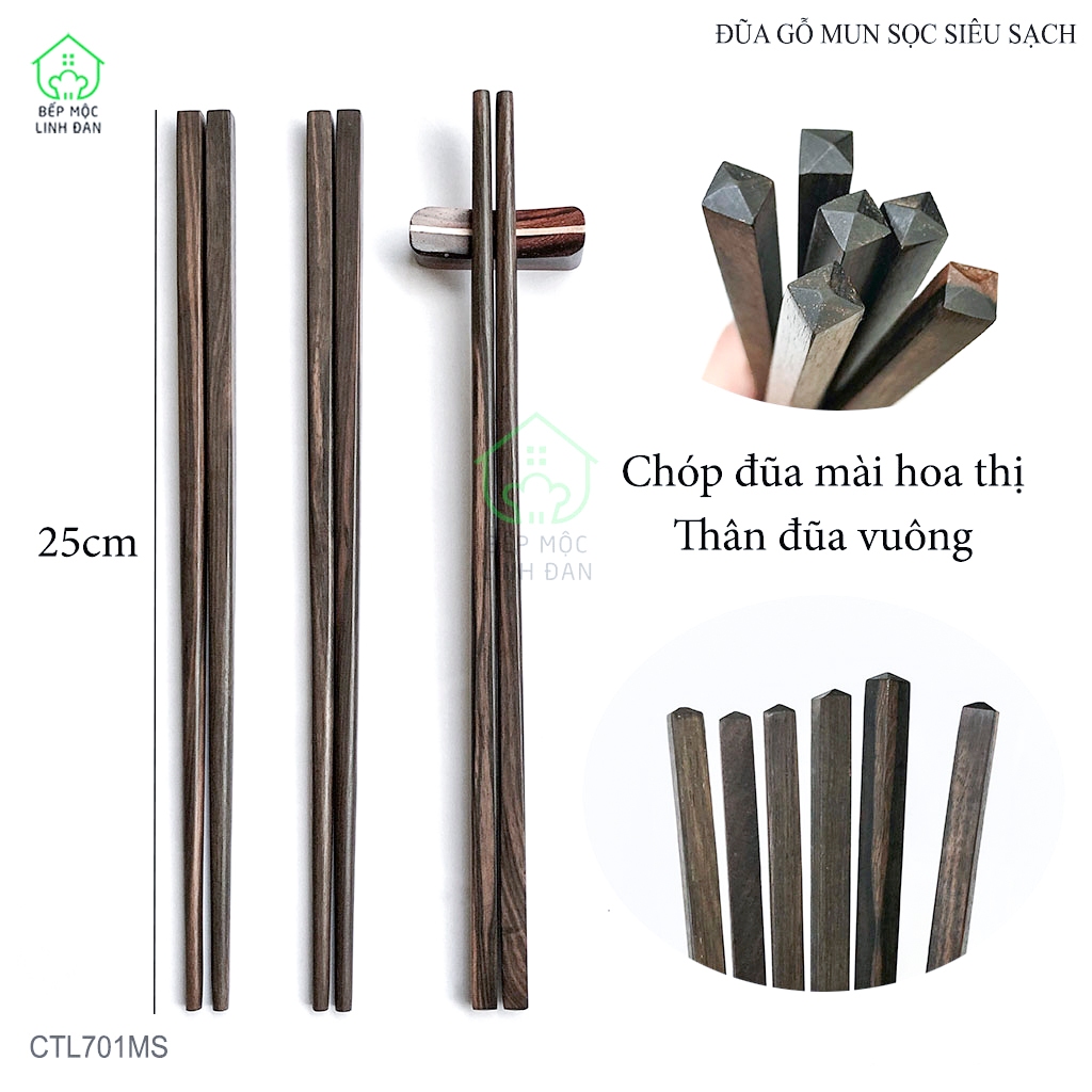 Đũa Gỗ Mun Sọc Tự Nhiên Để Mộc Siêu Sạch Bộ 10 Đôi Vuông HAHANCO [CTL701MS]