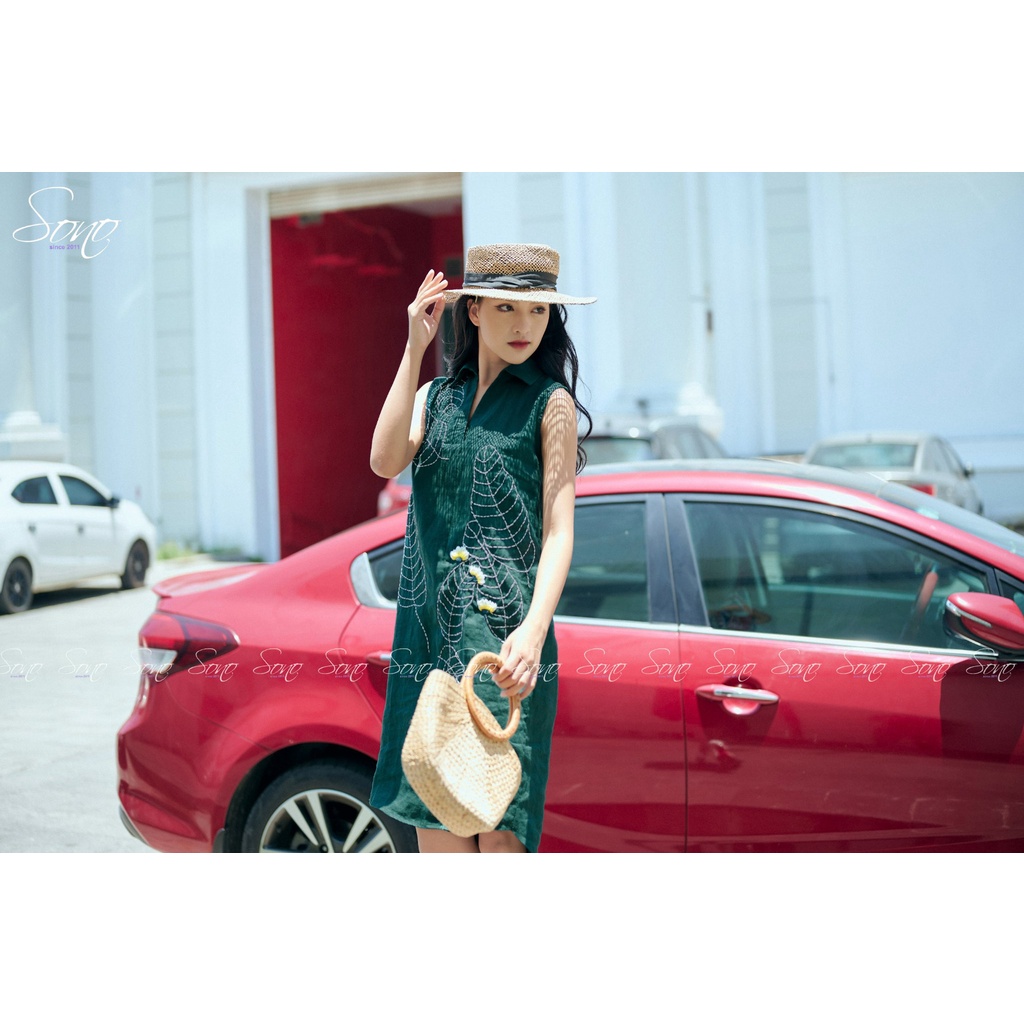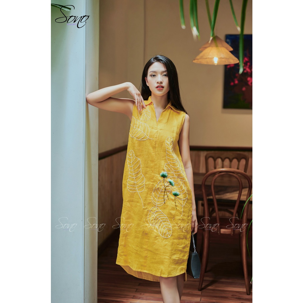 Sono - Đầm Linen Thêu Lá To Hàng Thiết Kế Kiểu Dáng Năng Động Trẻ Trung