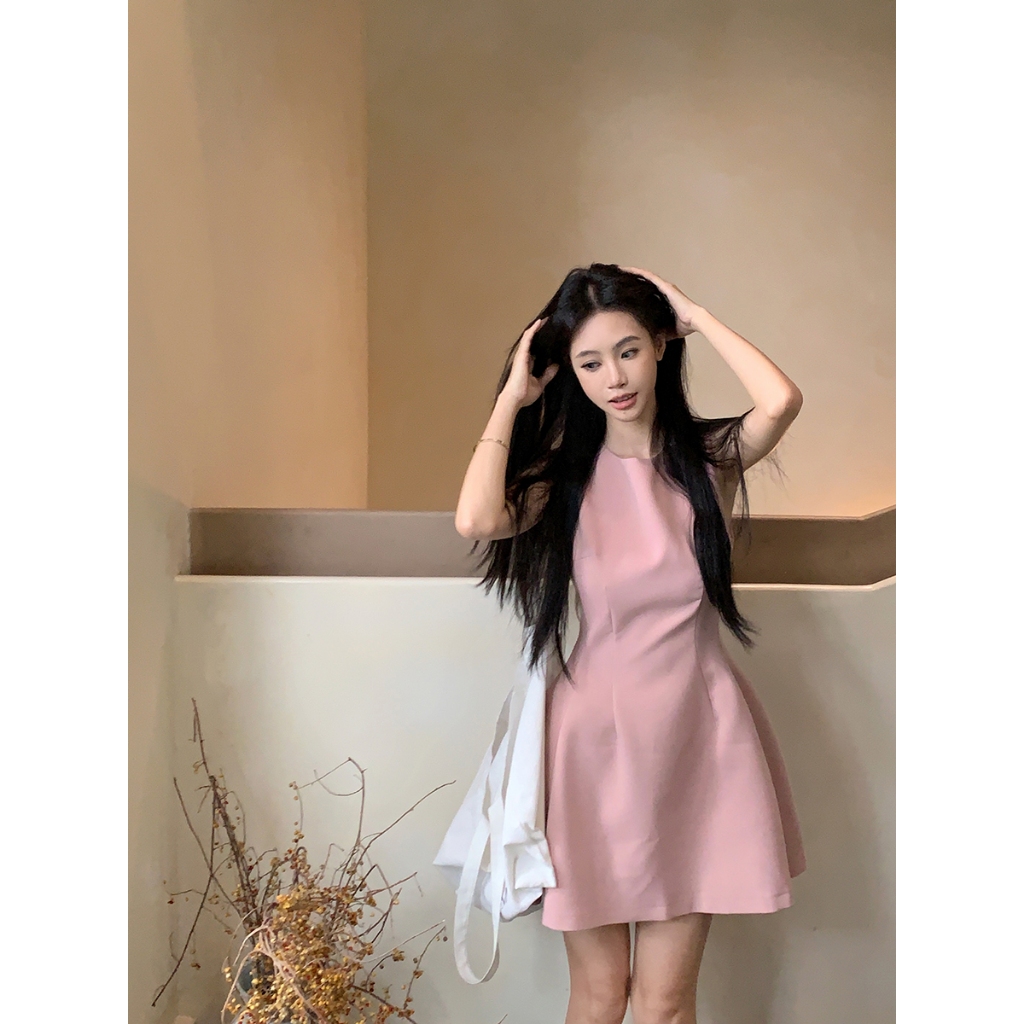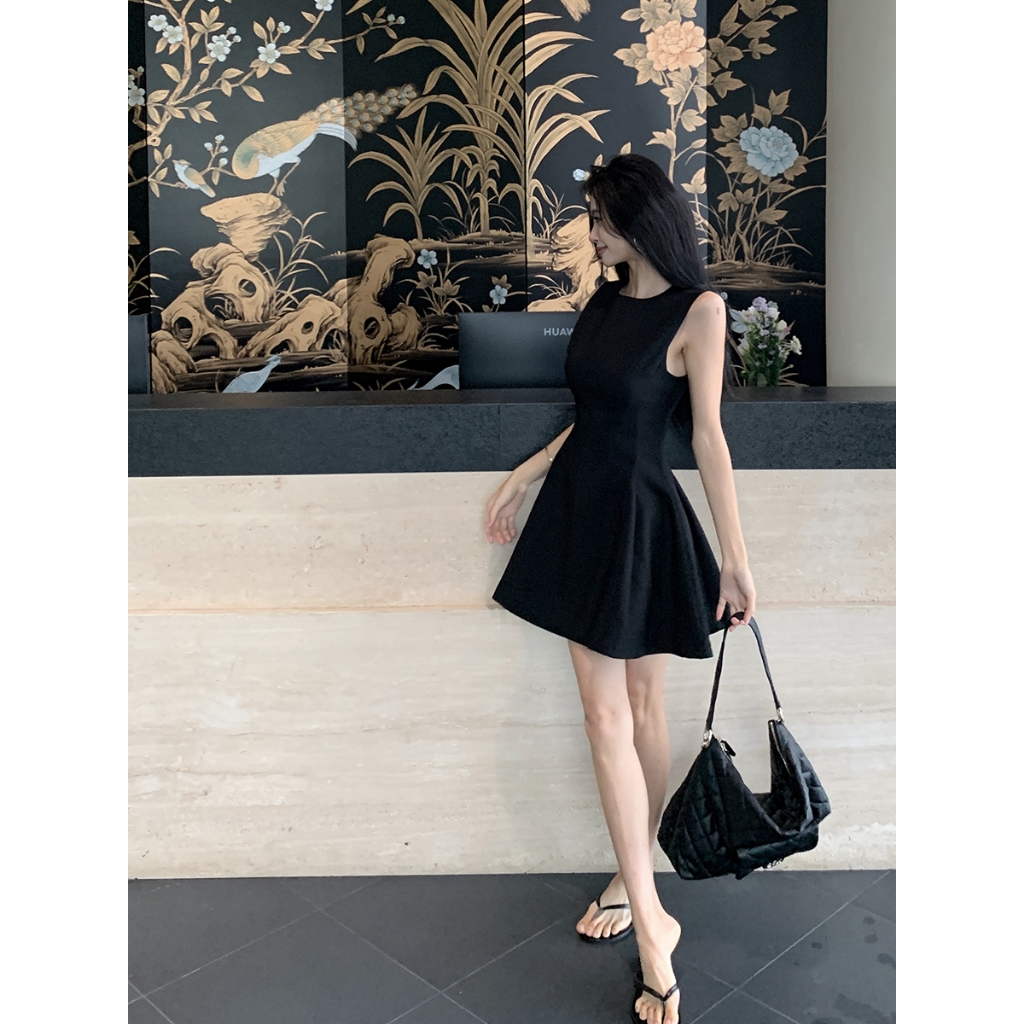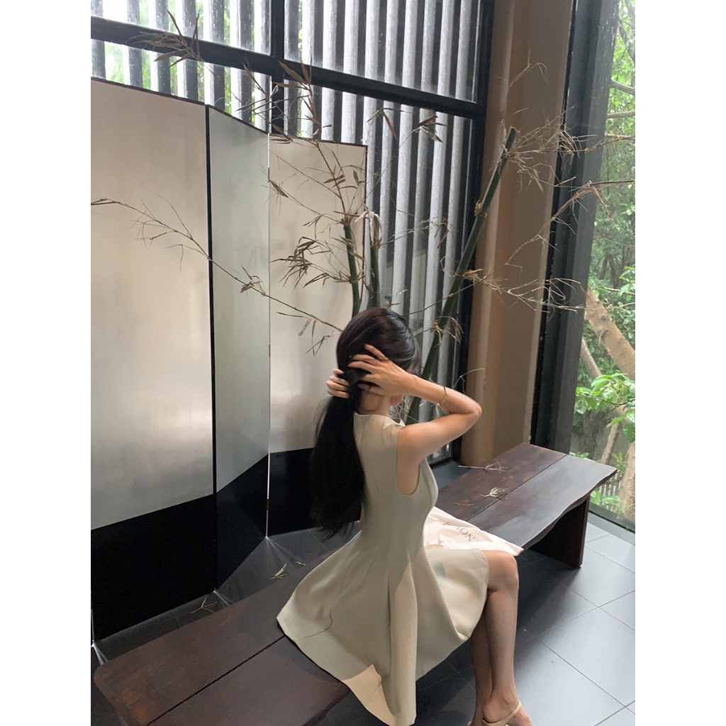 Đầm Trắng Ngắn Kiểu Ba Lỗ Dáng Chữ A Xòe Dưới Eo Body Thon Gọn Có Khóa Kéo Sau,Váy Đen Ngắn Không Tay Q.C Cao Cấp TA126
