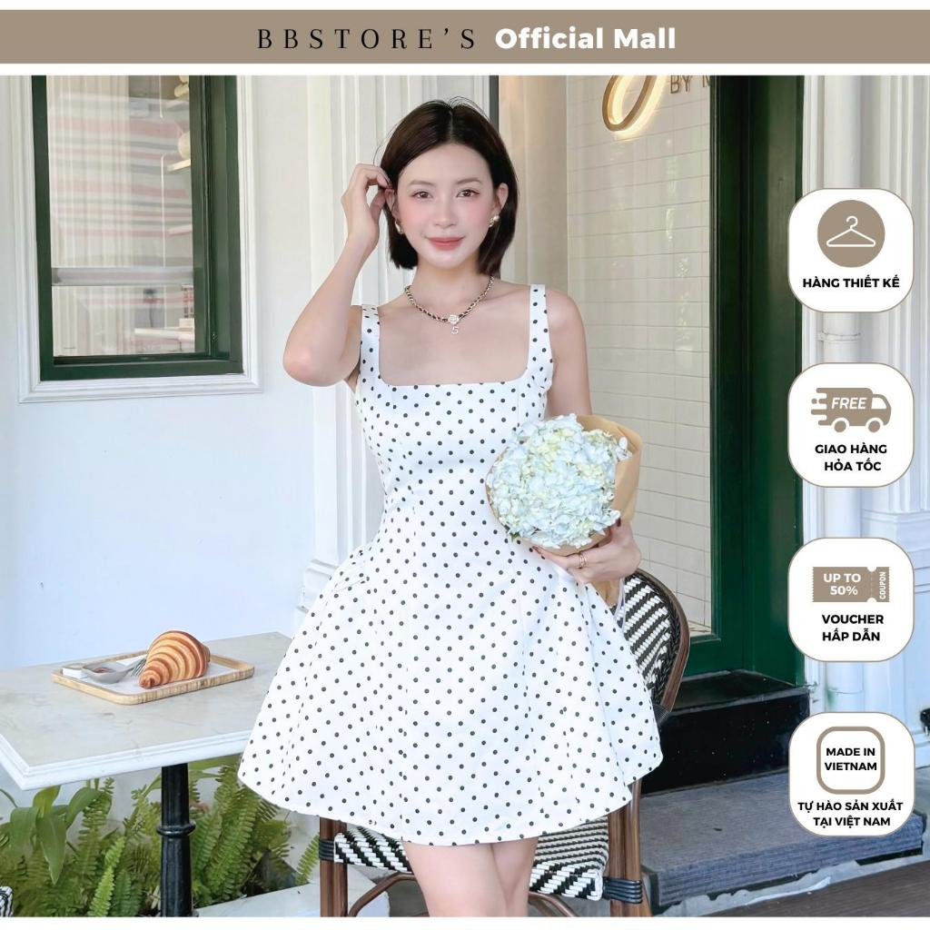 Đầm Xòe Dự Tiệc Form Ngắn Hai Dây Họa Tiết Chấm Bi Chất Cotton Xẹc BBSTORE'S -D4190T