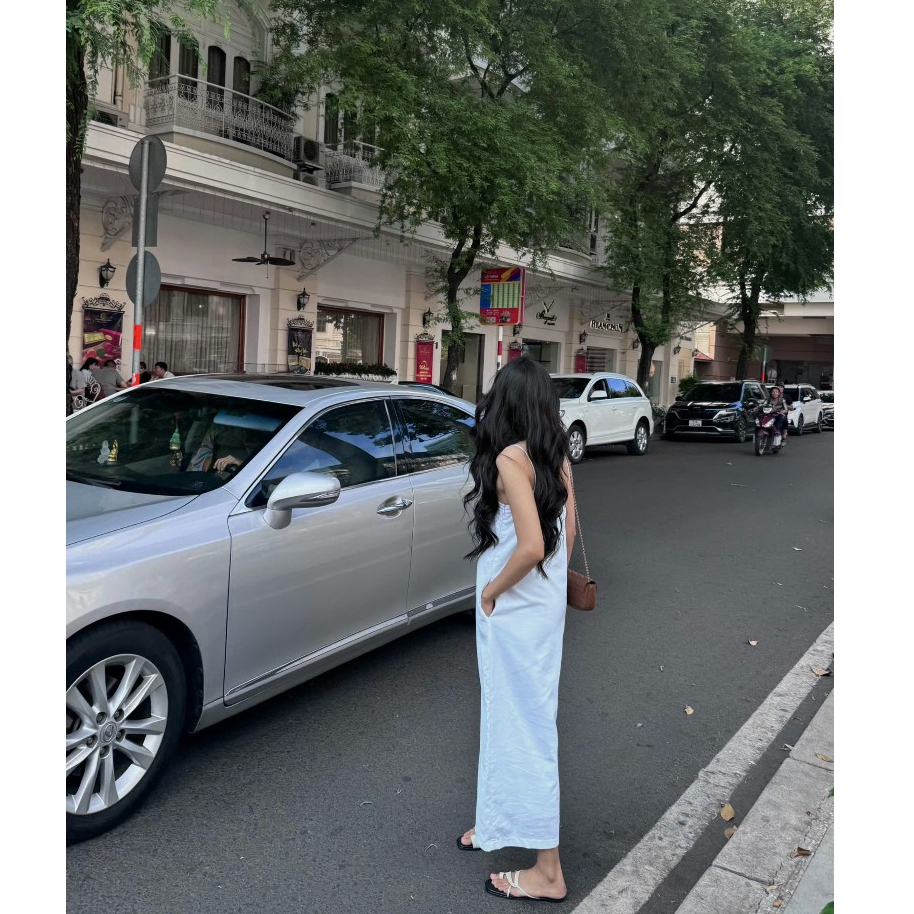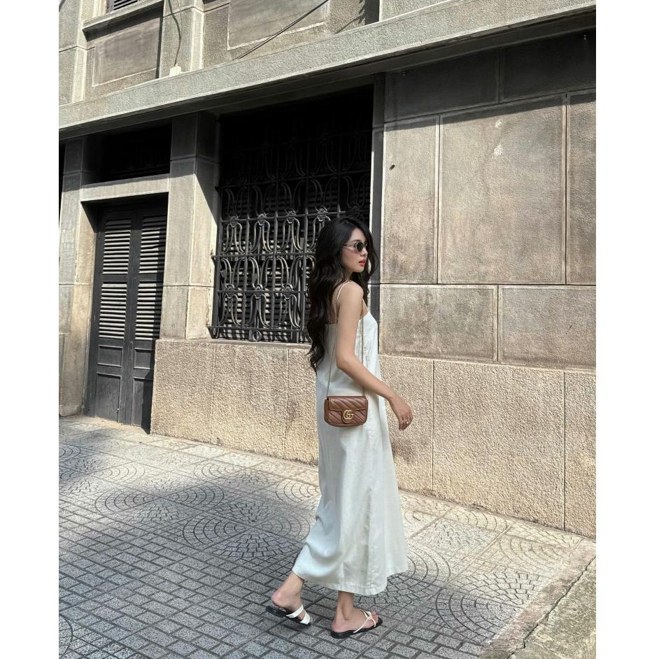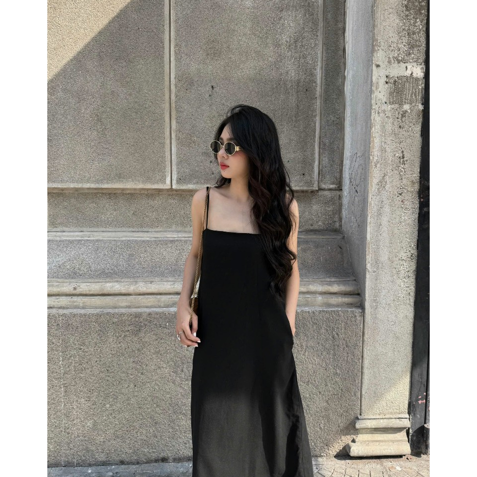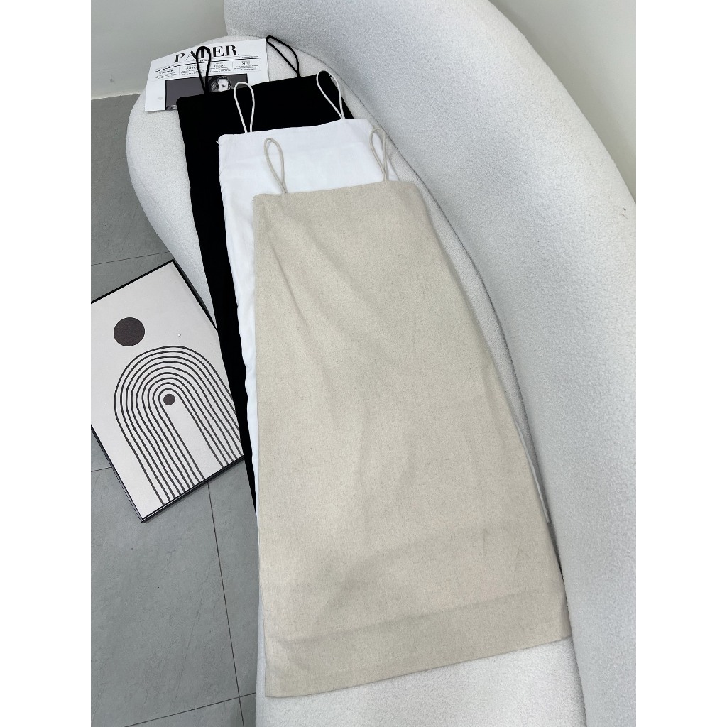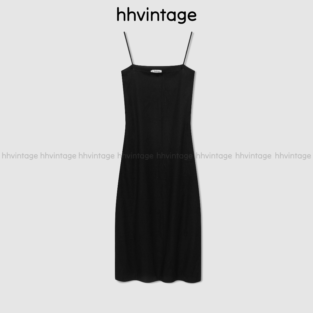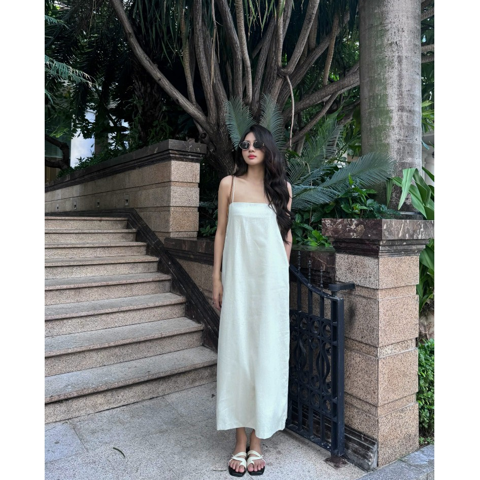 Đầm suông Linen dáng dài 2 lớp nữ HHVINTAGE kiểu hai dây basic chất Linen bột Dress A91