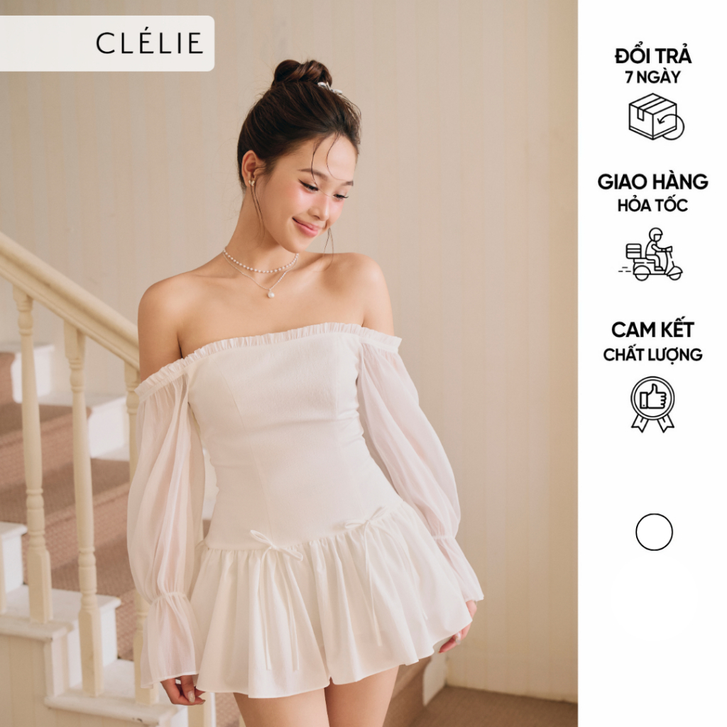 Đầm thiết kế nữ tay dài trễ vai phồng dáng xòe | DARLING DRESS - CLÉLIE