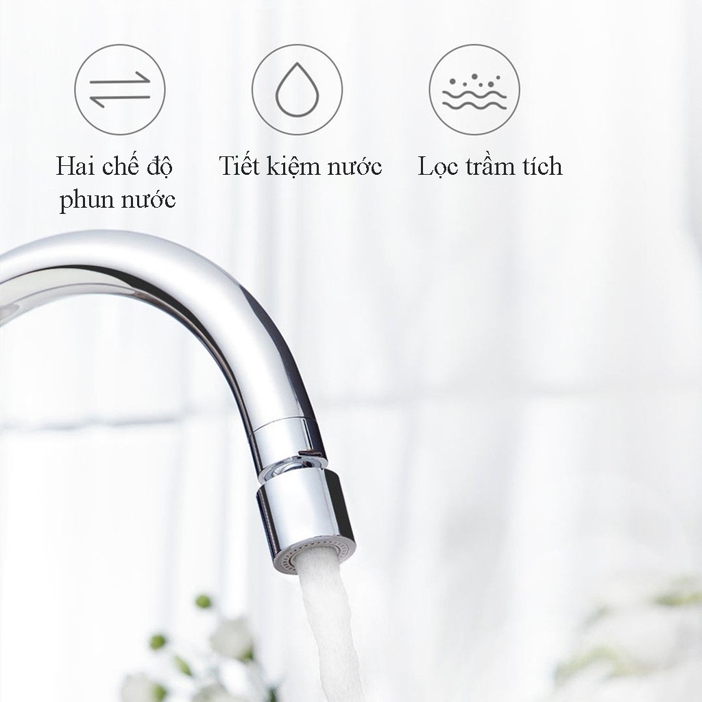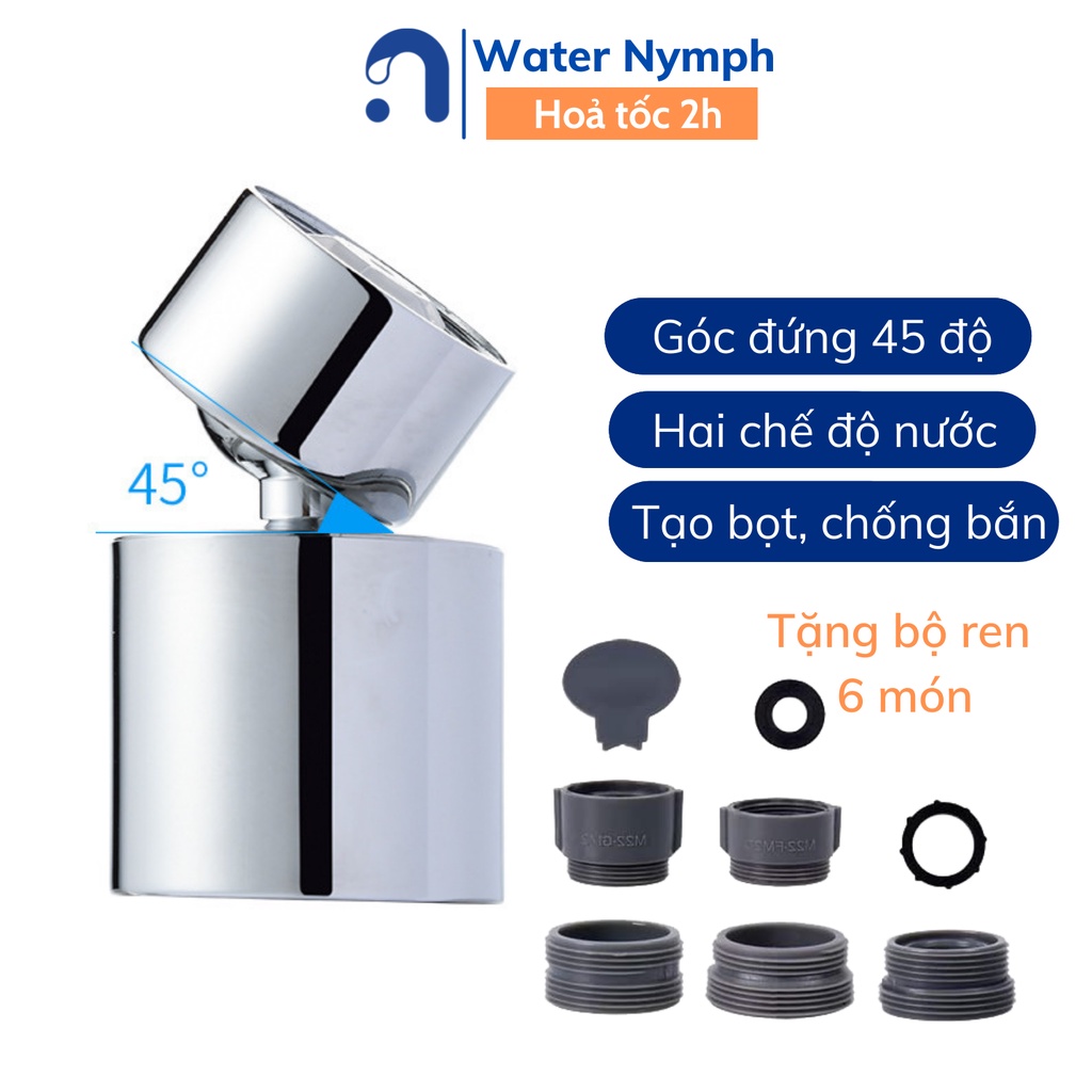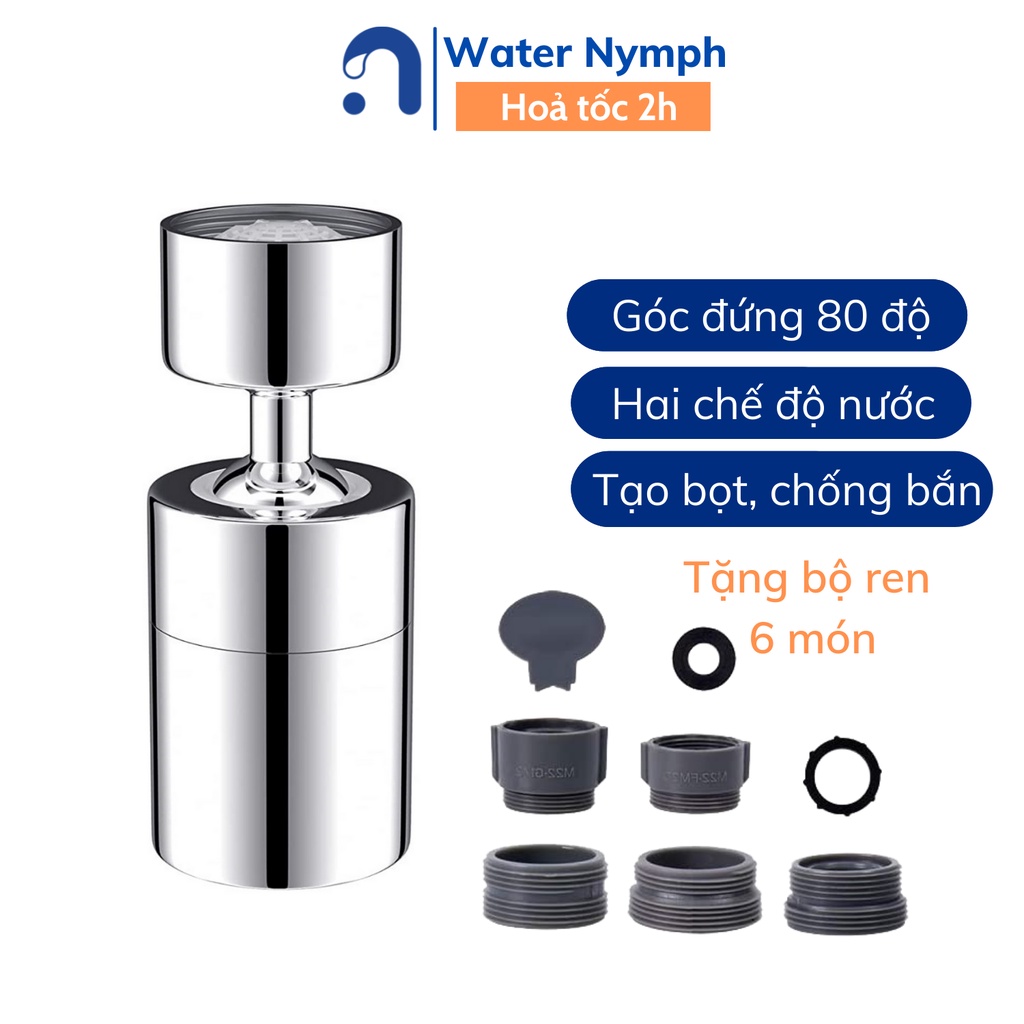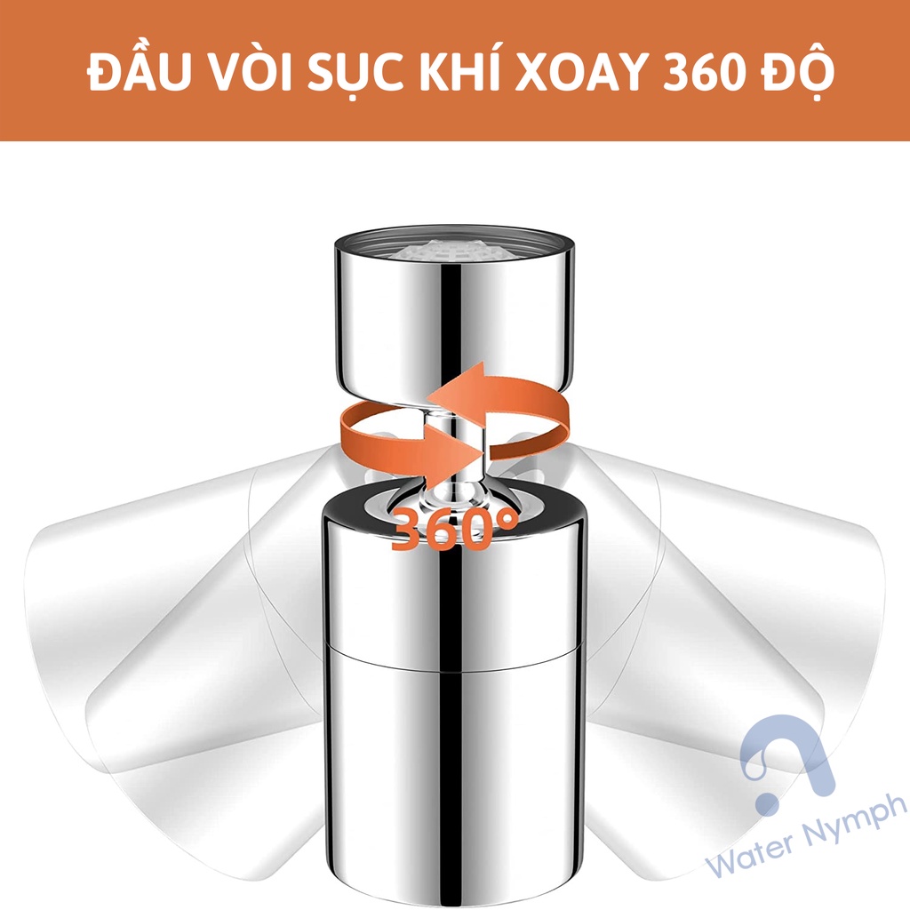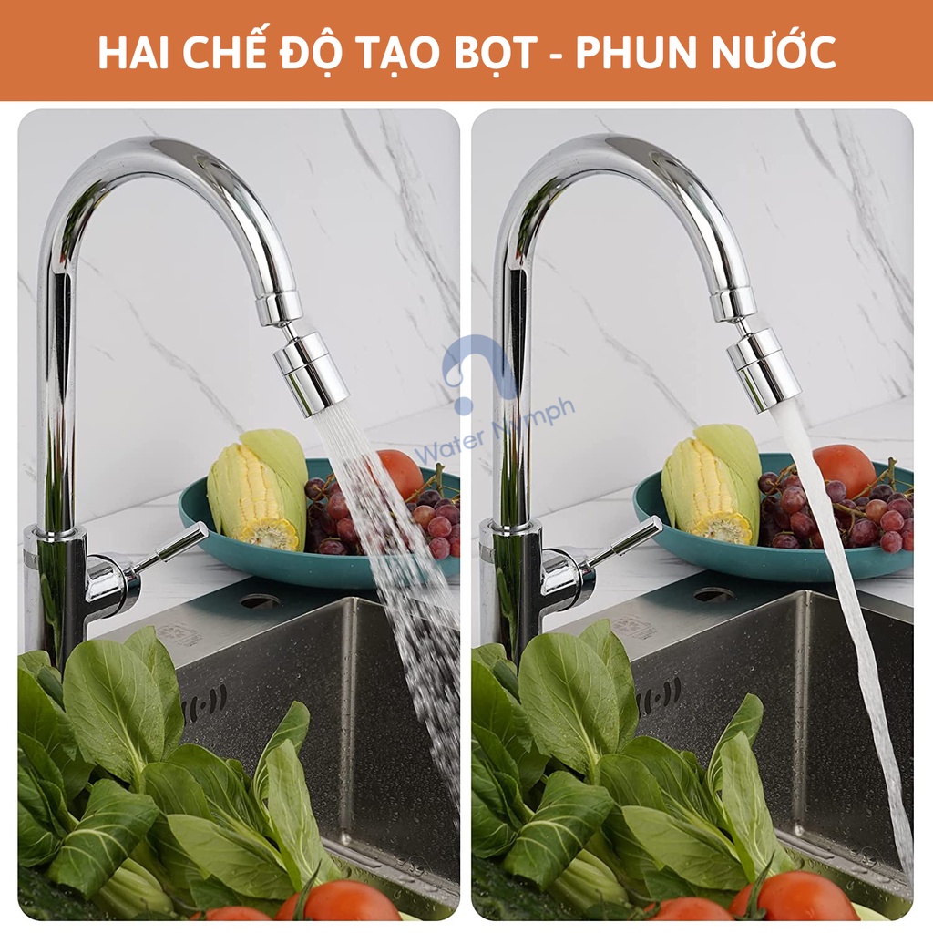 Đầu vòi rửa chén bát tăng áp, xoay 360 độ Waternymph chống bắn, 2 chế độ phun tiện ích (tặng bộ ren 6 món)