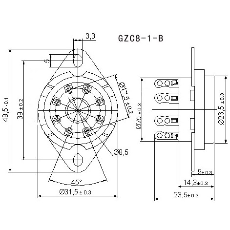D02 Đế đèn 8 chân sứ to dùng cho đèn EL34 6SN7 5U4G (01 cái)