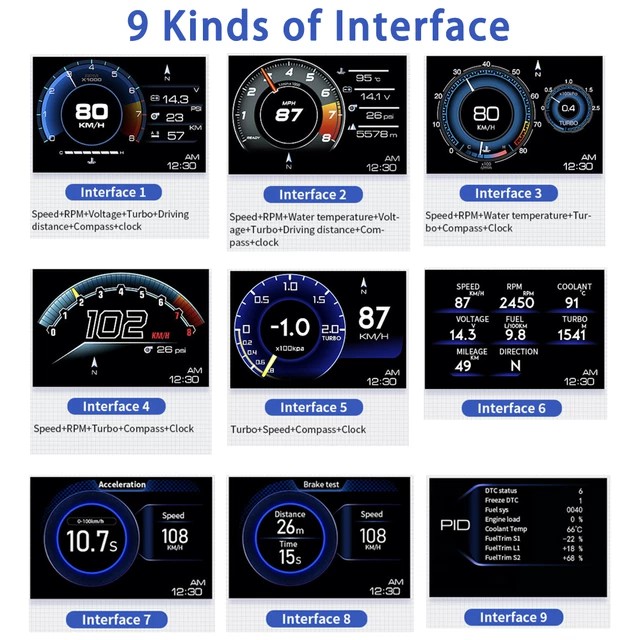 Xe HUD Head Up Display OBD2 Meter GPS Đồng hồ đo thông minh Đồng hồ tốc độ ô tô Báo động an ninh Nhiệt độ nước & dầu Tốc độ quá tốc độ RPM