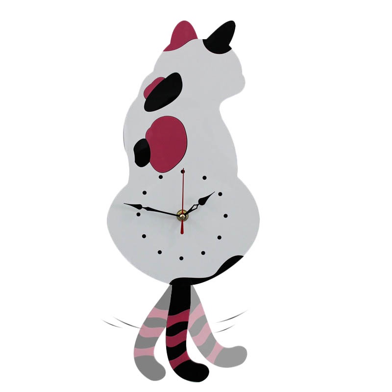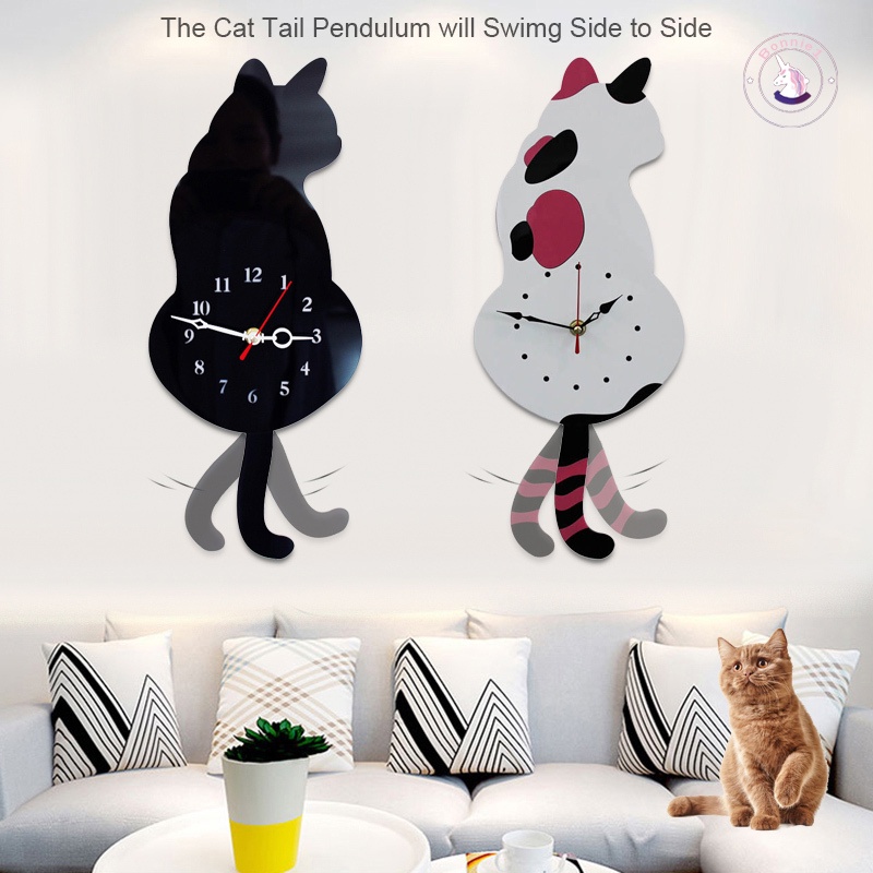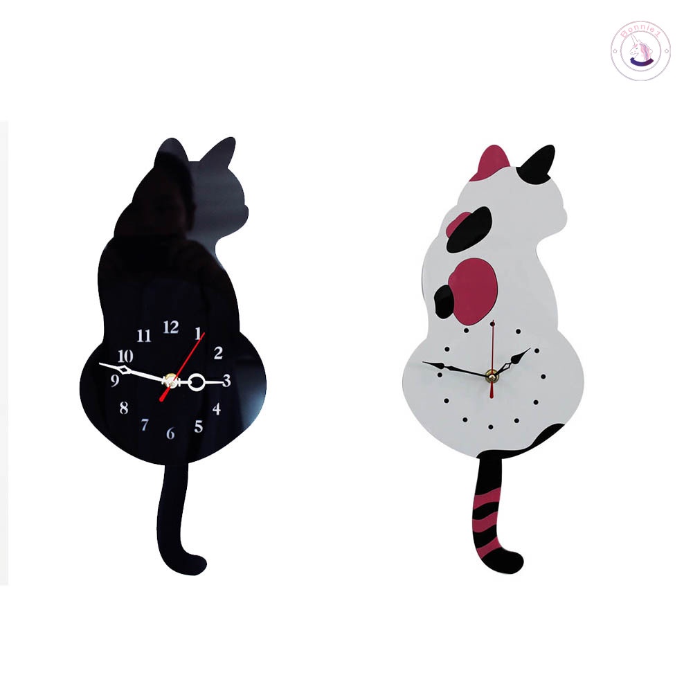 Đồng Hồ Treo Tường Hình Mèo Trắng / Đen Sáng Tạo Không Gây Tiếng Ồn