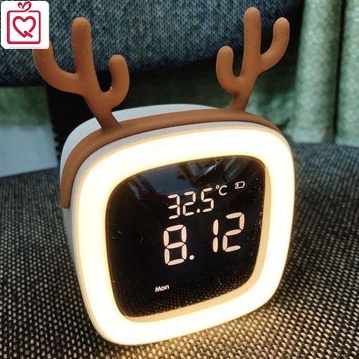 Đồng hồ báo thức đề bàn đèn Led ánh sáng dịu nhẹ đội tai dễ thương (Tặng 5 tai trang trí)