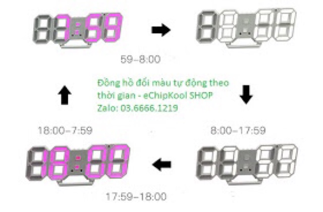 Đồng hồ led 3D mini V2 - Đổi màu - Phiên bản 2018