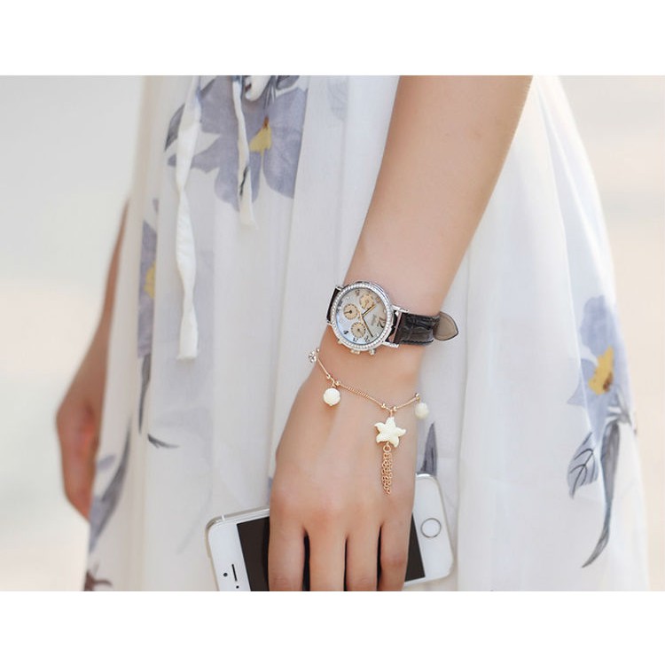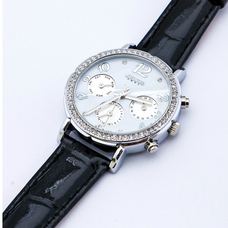 Đồng hồ nữ 6 kim Julius Ja828 dây da (đen)