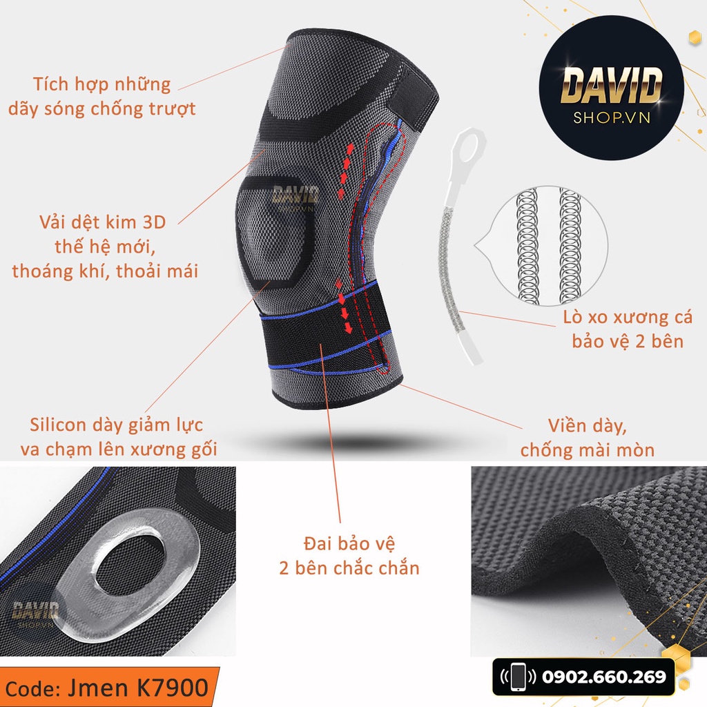 Đai bảo vệ khớp gối silicon 3 trong 1 Jmen K7900 hàng xịn