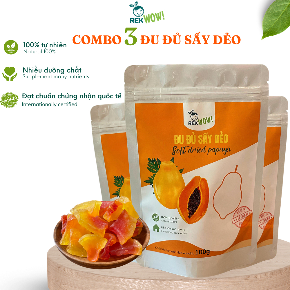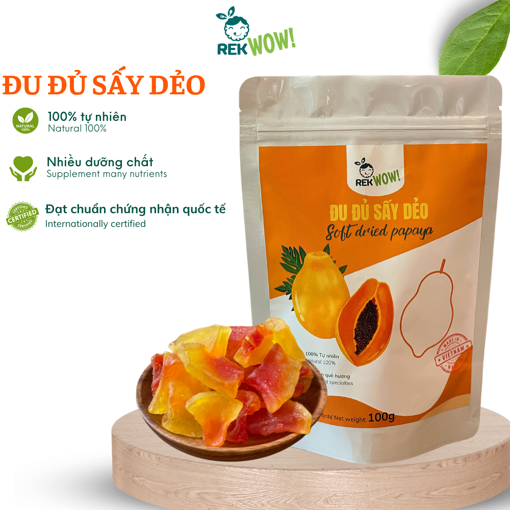Đu Đủ Sấy Dẻo REK WOW - Túi 100g - Ăn vặt tốt cho sức khỏe - Trái cây sấy dẻo