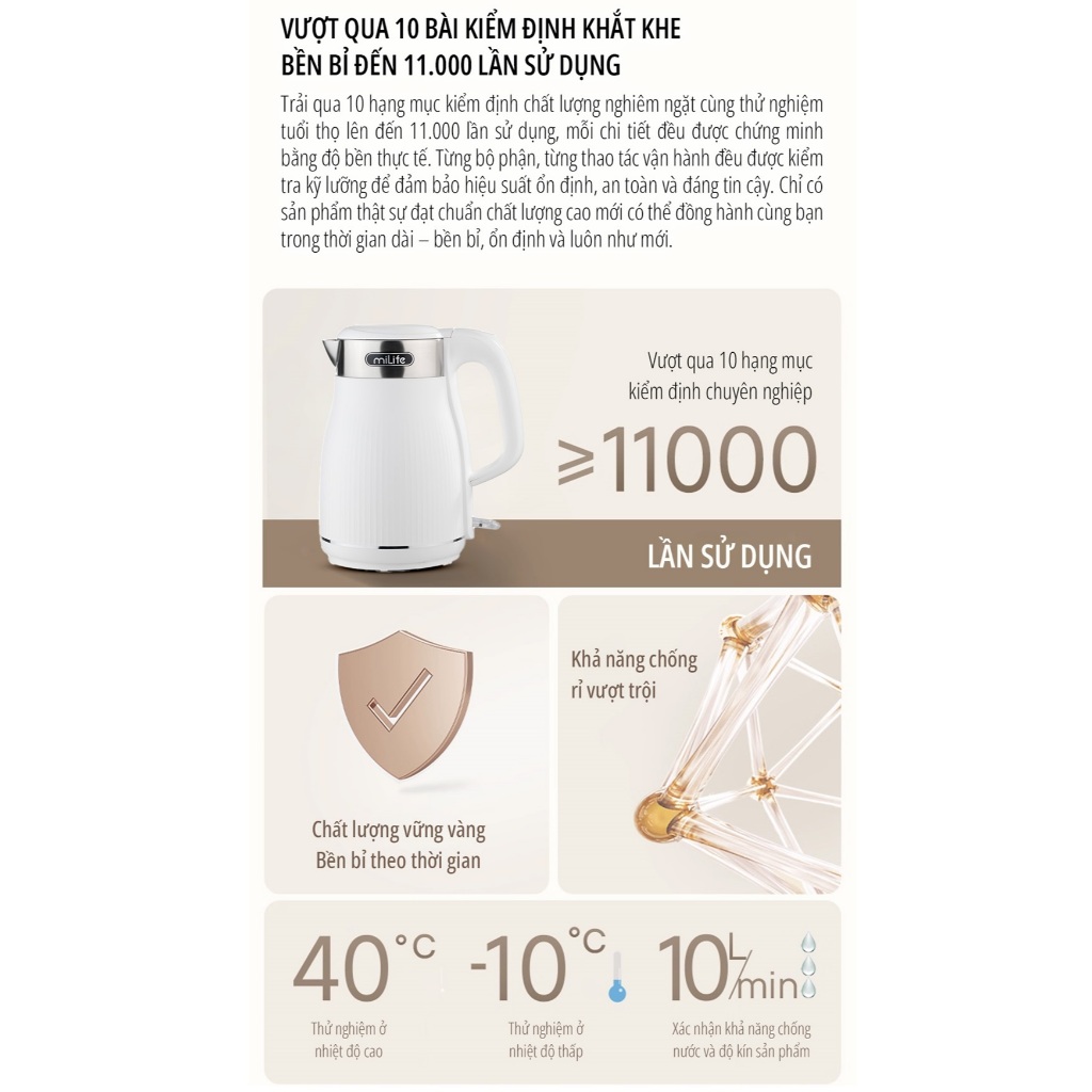 Ấm đun siêu tốc miLife N5 1.8L, 1800w, inox 304 cao cấp, đạt chuẩn SNI