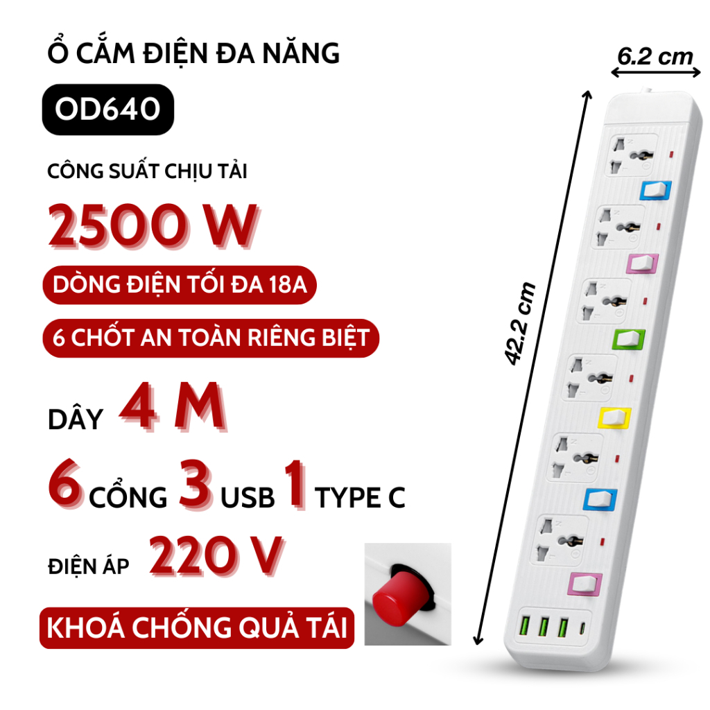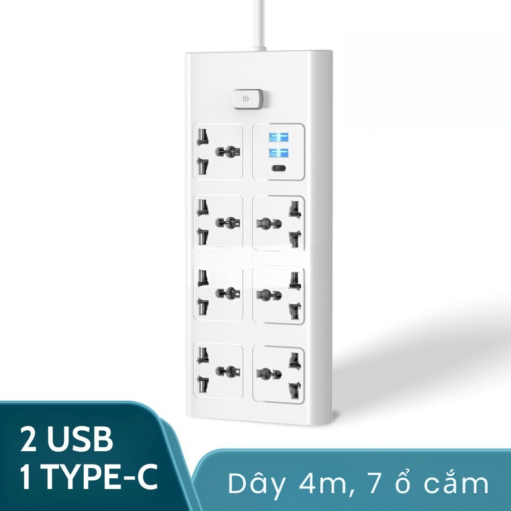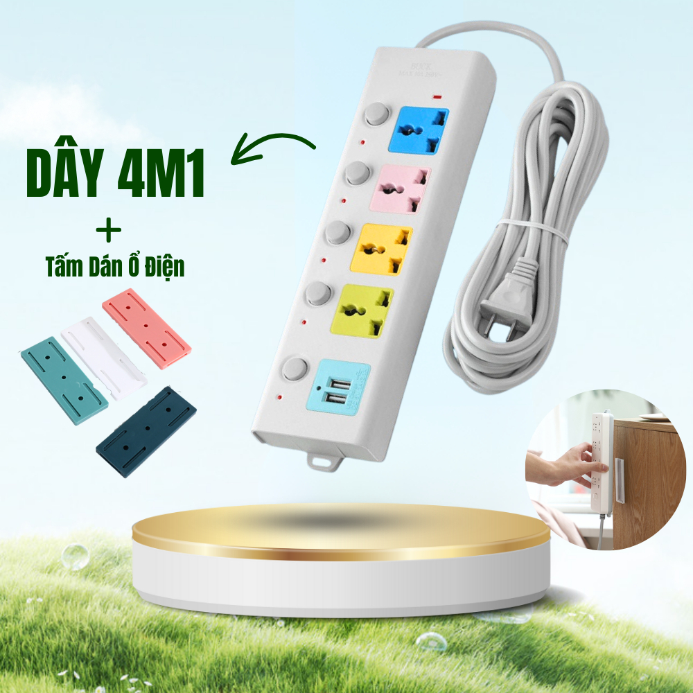 Ổ Cắm Điện Đa Năng METIS Chịu Tải 2500W Dài 1.8-4m Cổng USB Có Chốt Bấm Chống Giật An Toàn