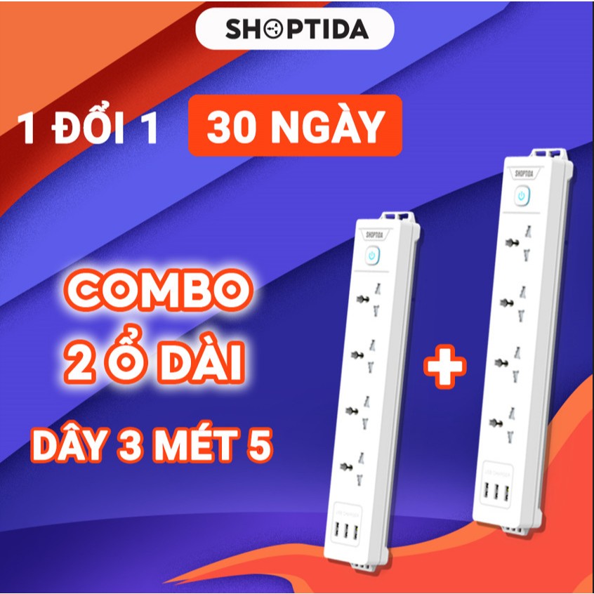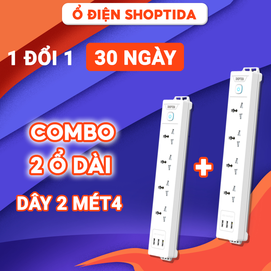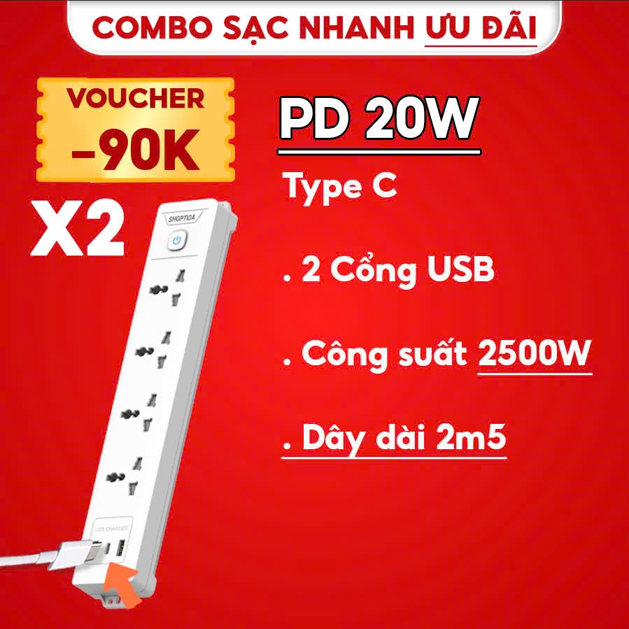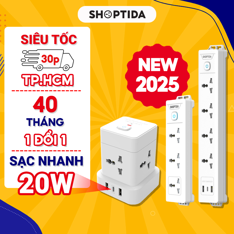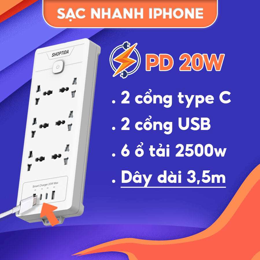 Ổ cắm điện đa năng Shoptida 3-12 ổ tải 2500W, sạc nhanh 20W cổng typeC, 1 đổi 1 40 tháng