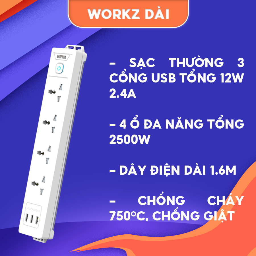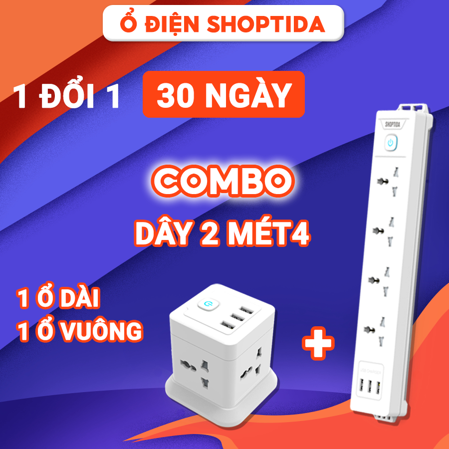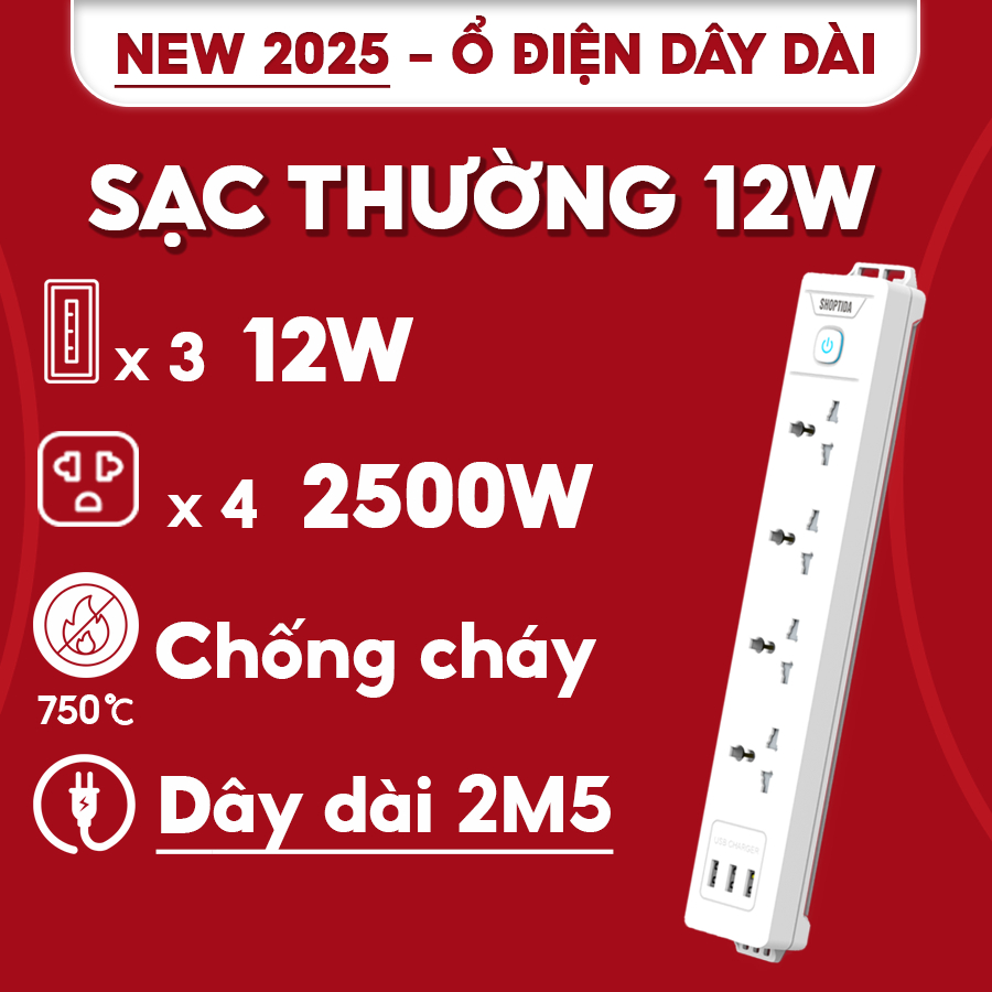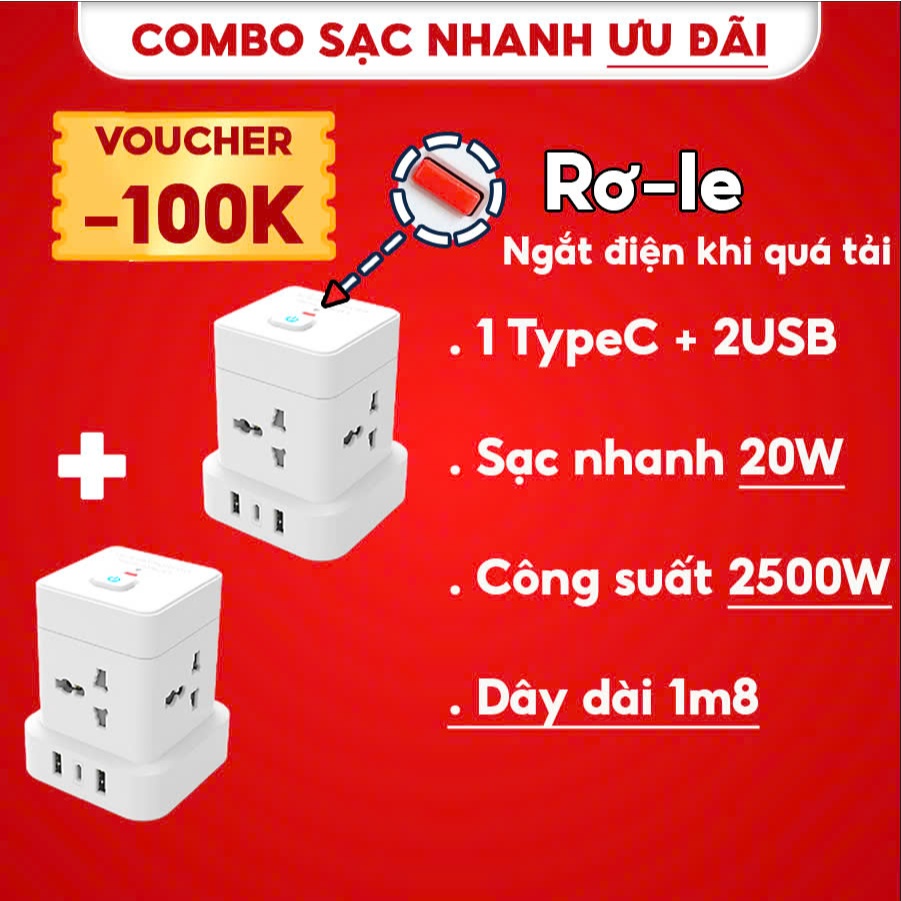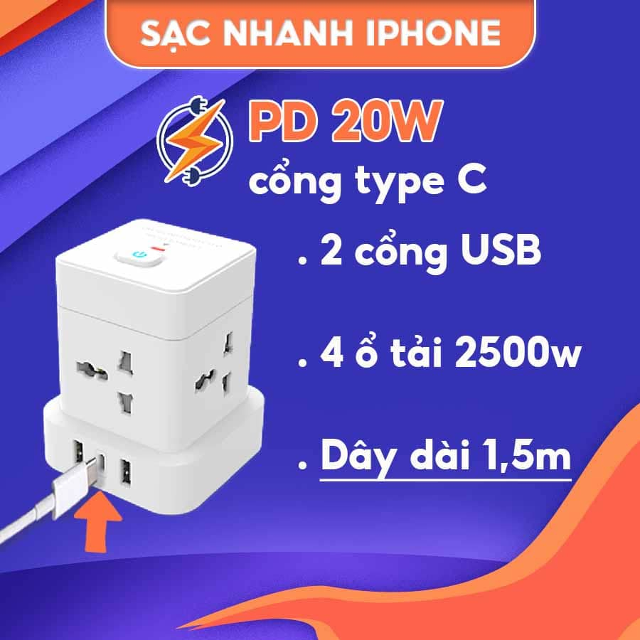 Ổ cắm điện đa năng Shoptida 3-12 ổ tải 2500W, sạc nhanh 20W cổng typeC, 1 đổi 1 40 tháng