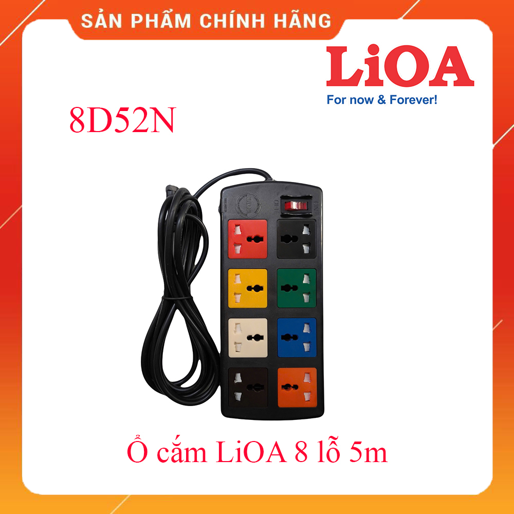 Ổ cắm điện LiOA 8 lỗ 5m 8D52N 8 ổ 3 chấu đa năng kéo dài chính hãng