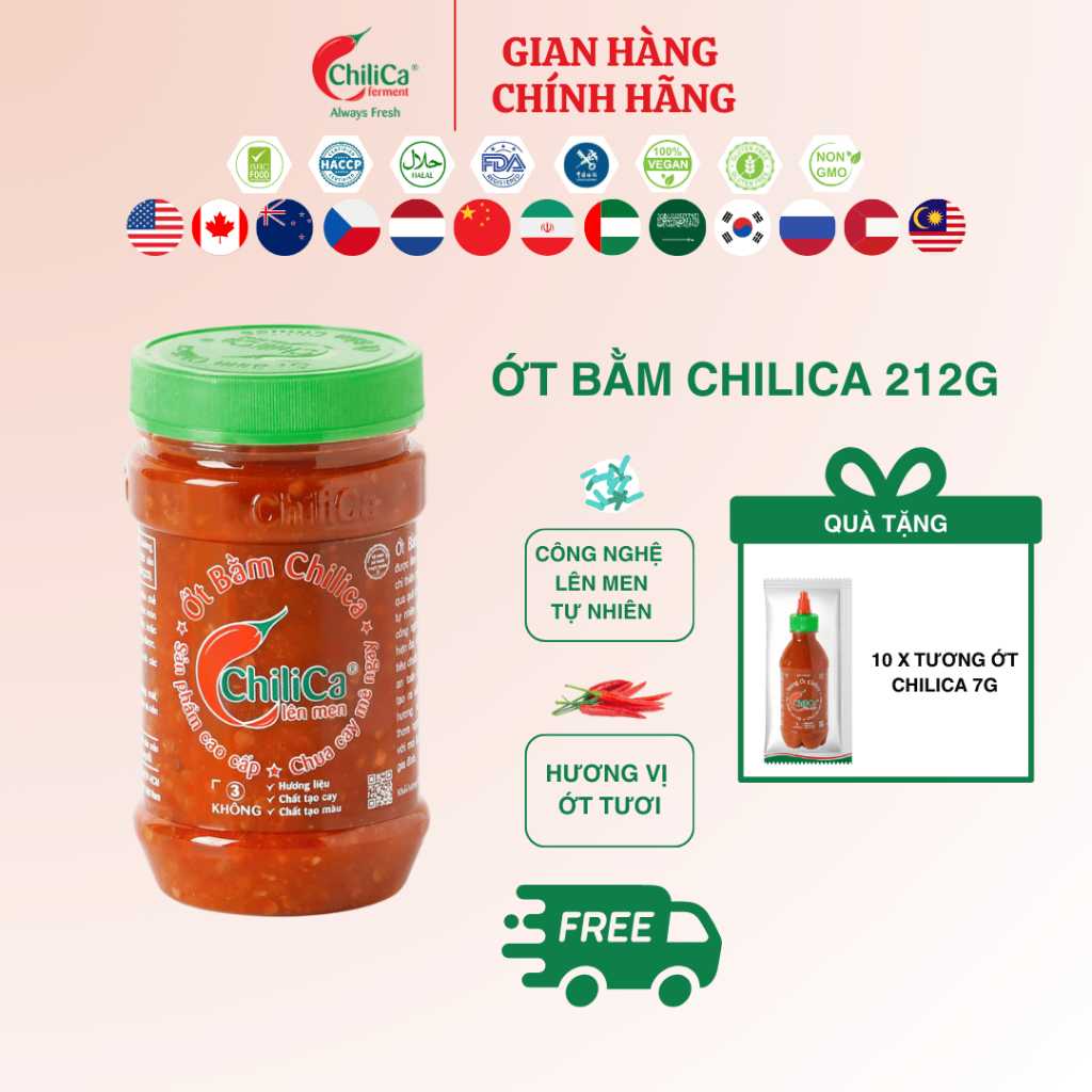 [MUA 1 TẶNG 1] Ớt Bằm ChiliCa 212g - Lên Men Tự Nhiên, Không Chất Điều Vị, Không Hương Liệu, Không Phẩm Màu