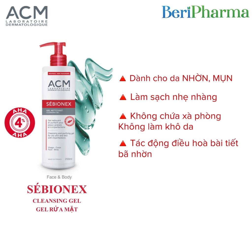✅[CHÍNH HÃNG] ACM Sữa Rửa Mặt Làm Sạch Sâu Cho Da Dầu Mụn Sebionex Cleansing Gel 200ml
