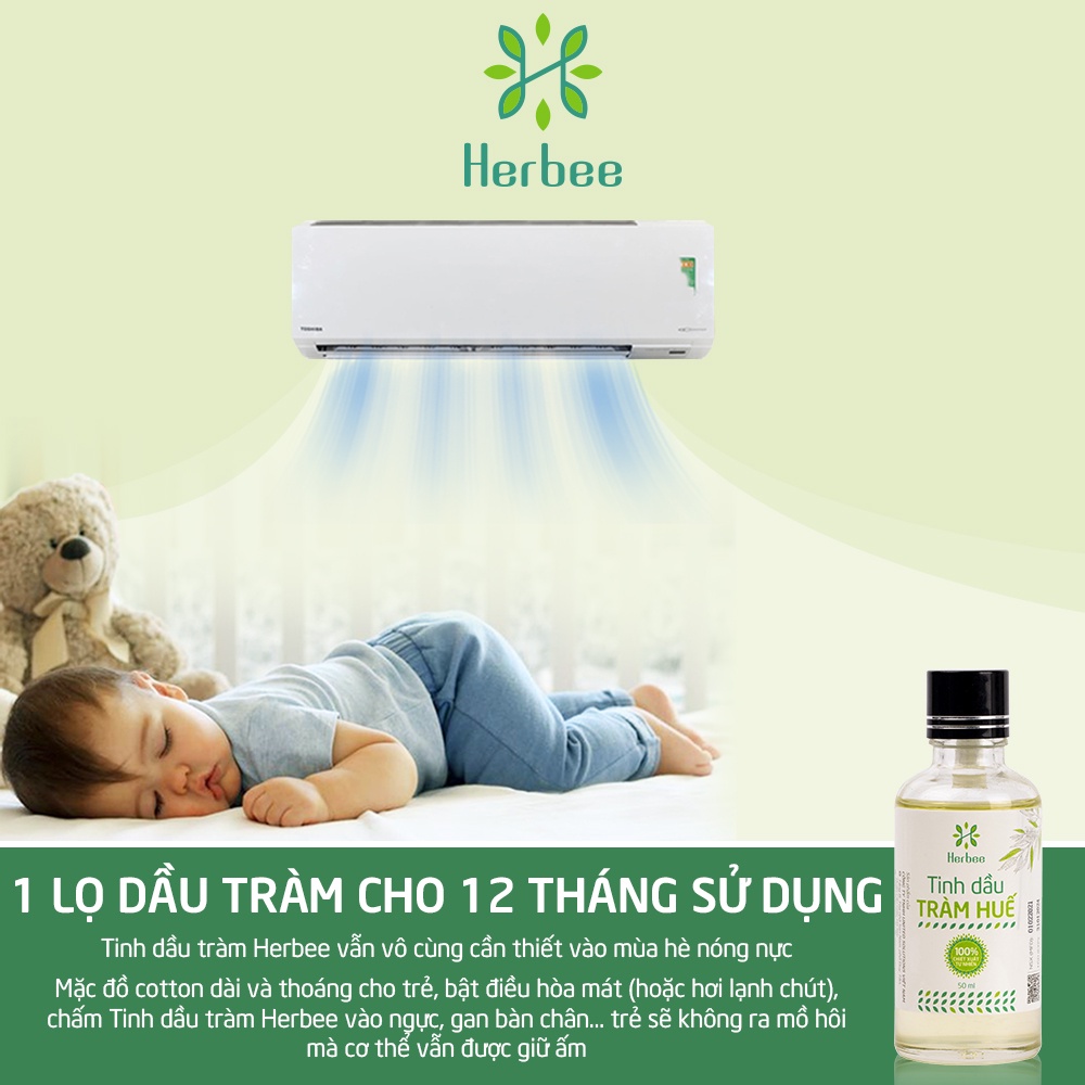 Tinh Dầu Tràm Huế Thương Hiệu Herbee (50ML) Dùng Xông Tắm Trị Côn Trùng Cắn Đốt Cho Trẻ Nhỏ & Sơ Sinh