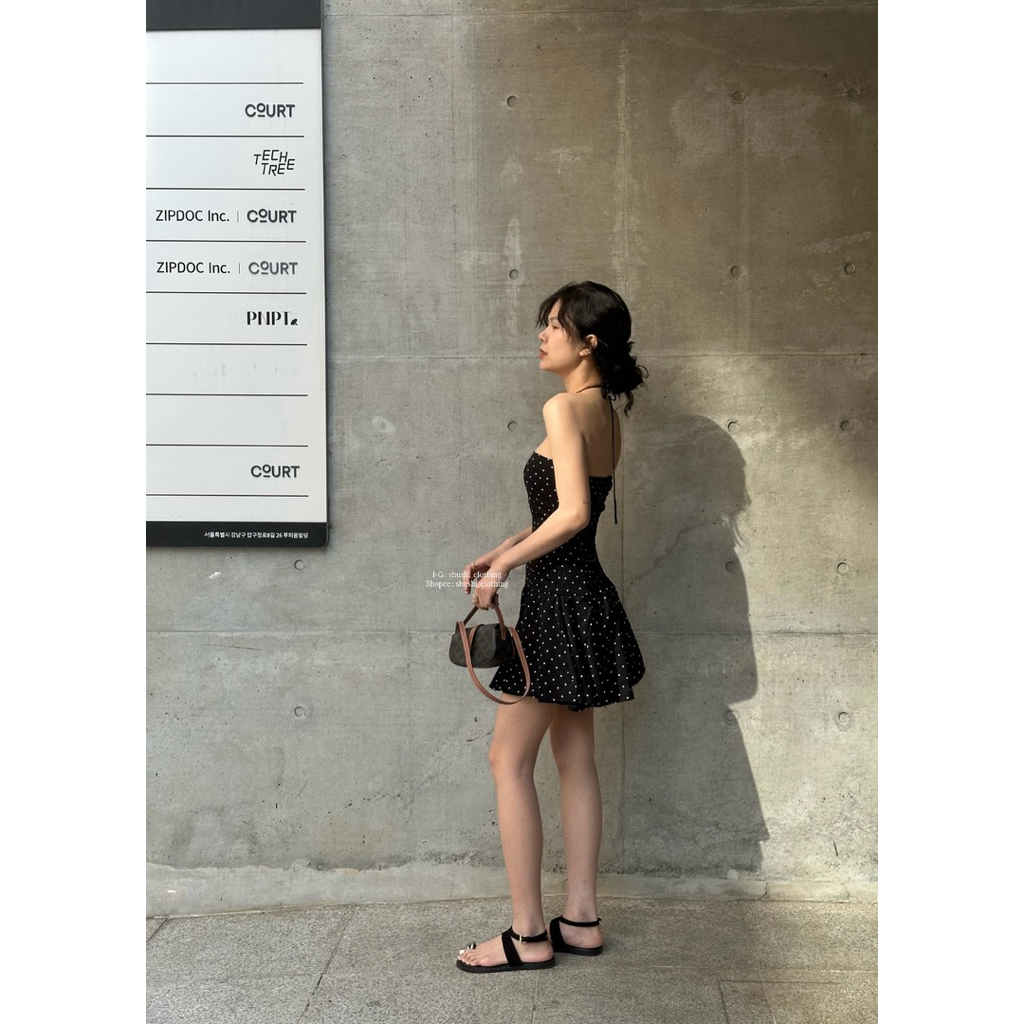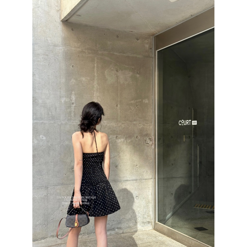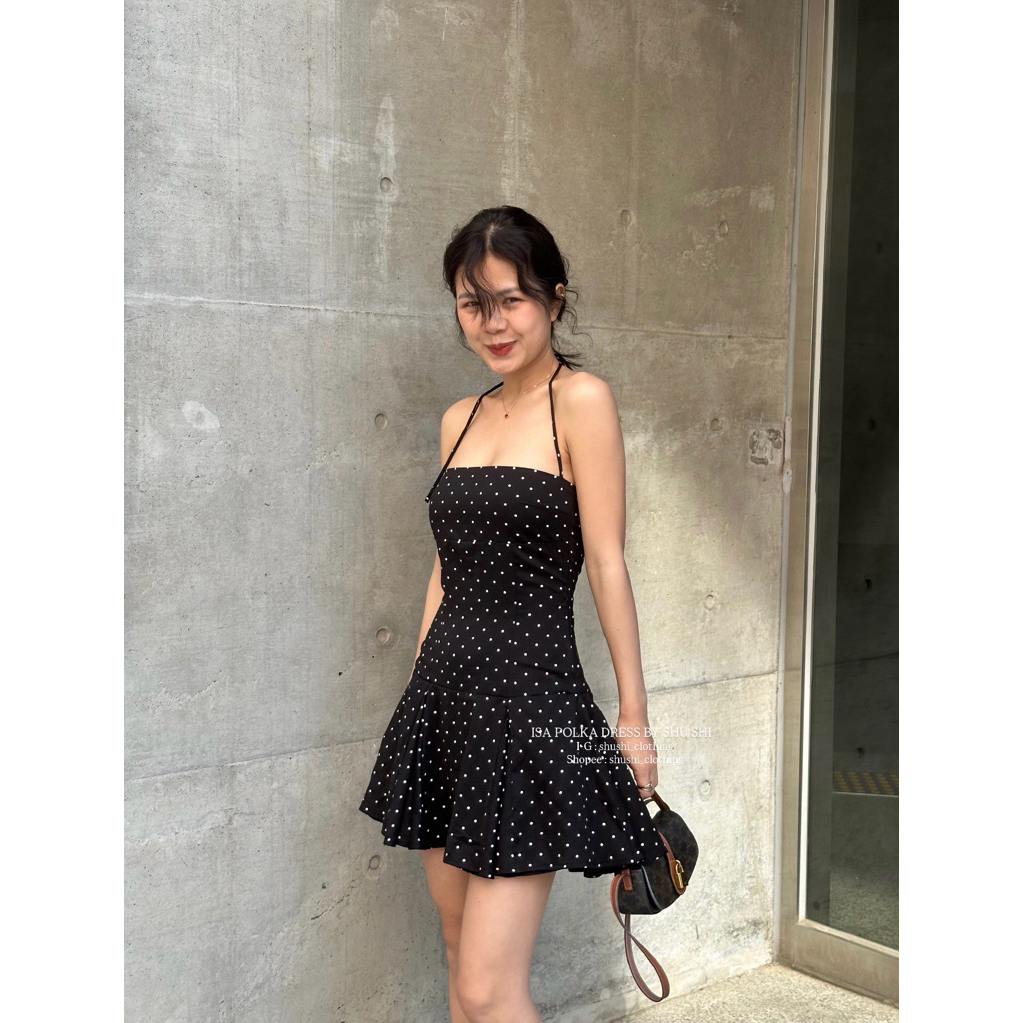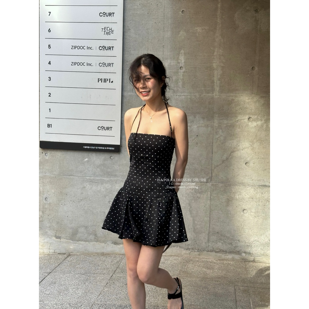 𝐈𝐬𝐚 𝐏𝐨𝐥𝐤𝐚 𝐃𝐫𝐞𝐬𝐬 | Đầm Chấm Bi Ngắn Màu Đen ( ảnh chinh chủ )i