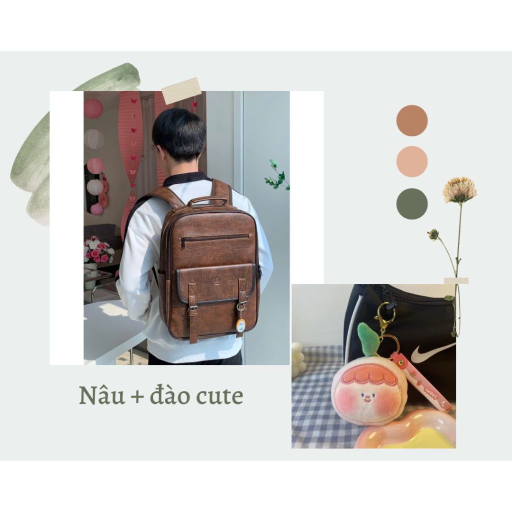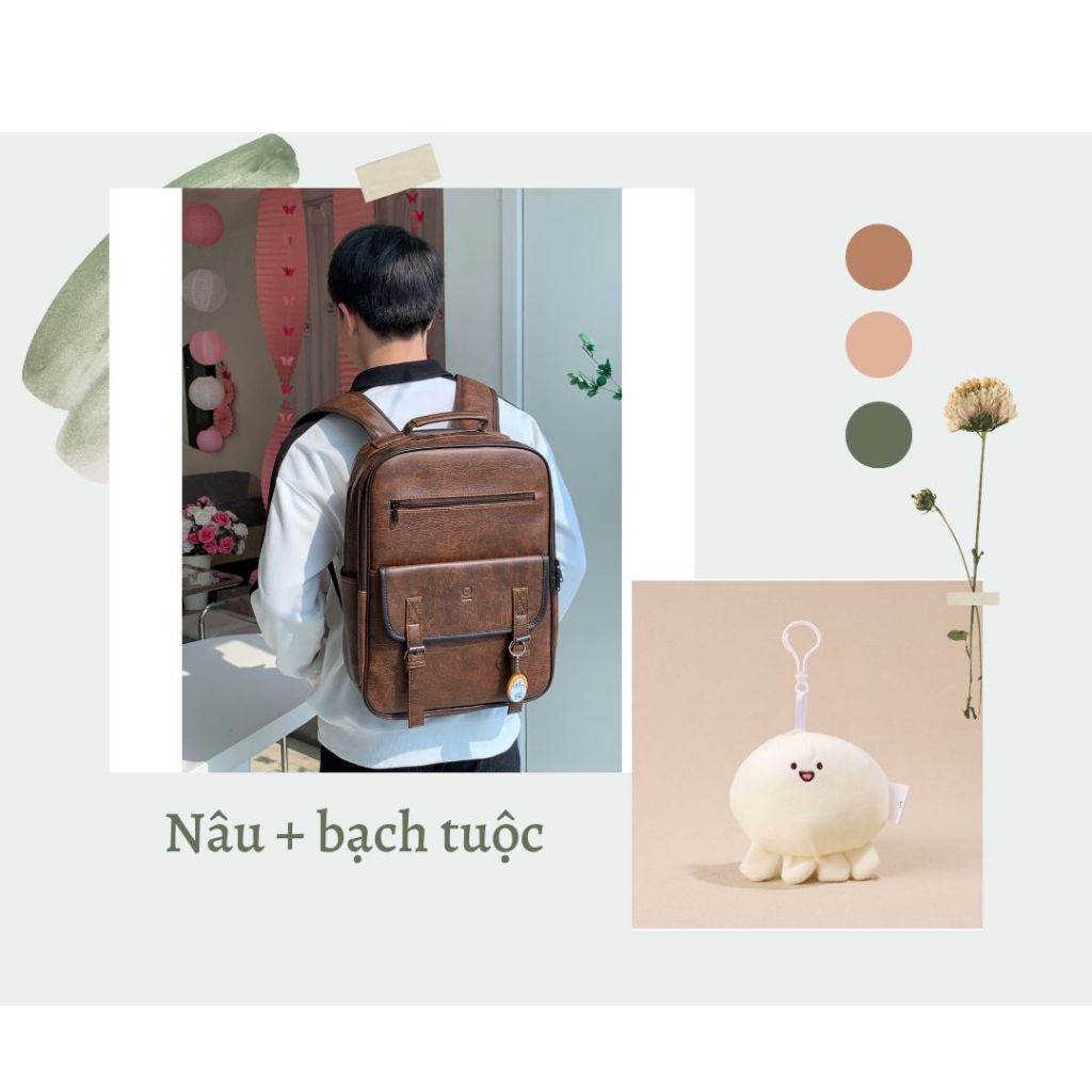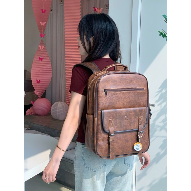 🌈🍀 Balo da Pu kiểu dáng Hàn Quốc basic nắp gập Uri 3 đựng vừa lap 15.6inch 🦋 HÀNG CÓ SẴN 🍊🌸