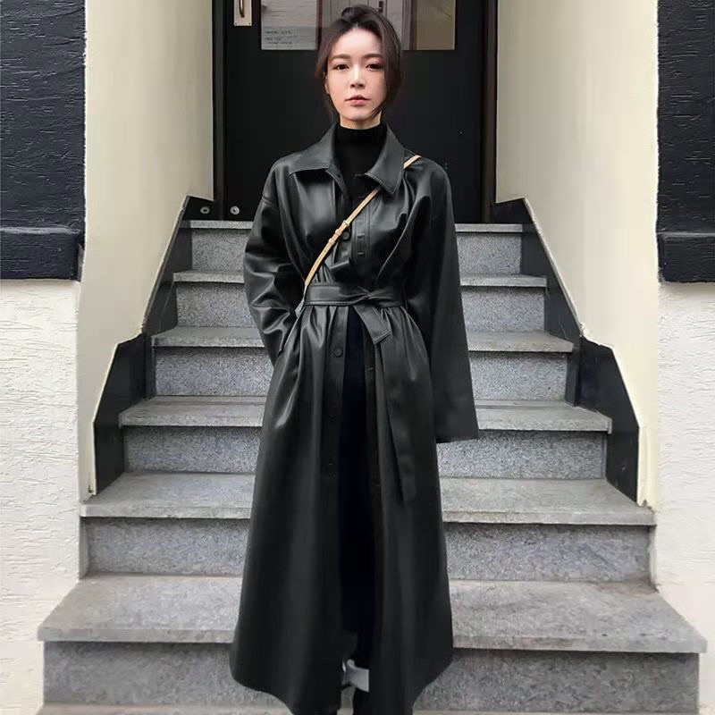 ( ORDER ) ( SẴN S ) Áo Mangto Da Nữ Dáng Dài