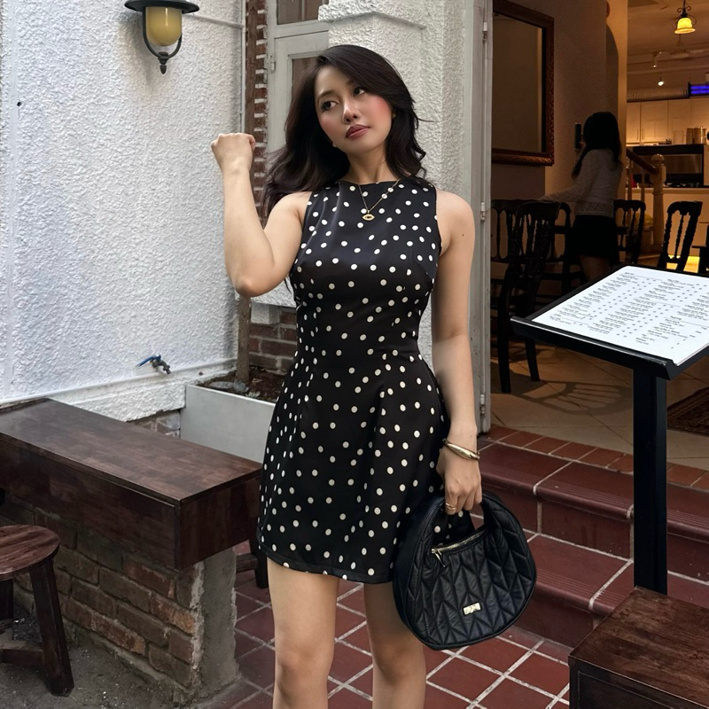 ( POLKA DRESS )Đầm lụa chấm bi hở lưng, kiểu dáng đơn giản thanh lịch | BAHYCHIC