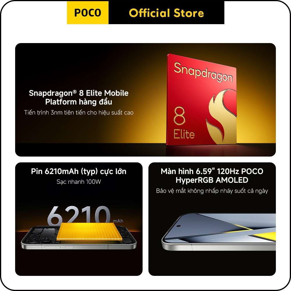 [Độc Quyền Online] Điện thoại POCO F8 Pro | 12GB+512GB, Snapdragon® 8 Elite, pin 6210mAh, màn hình AMOLED 6.59'' 120Hz s