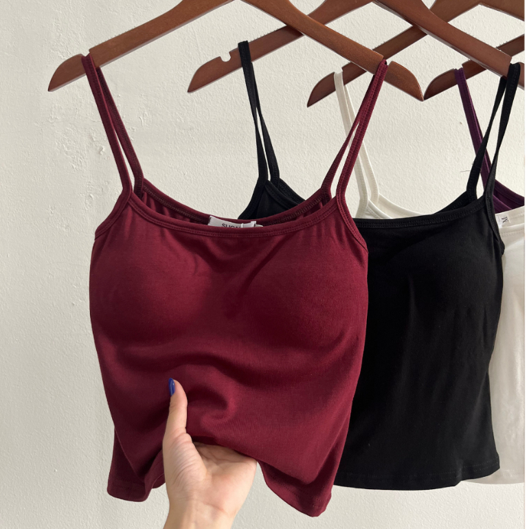 [Ảnh Shop Chụp] Áo Hai Dây Có Đệm Mút Trơn Basic Ôm Body Chất Cotton Nhiều Màu Thời Trang Sugal TOP NU 219V3