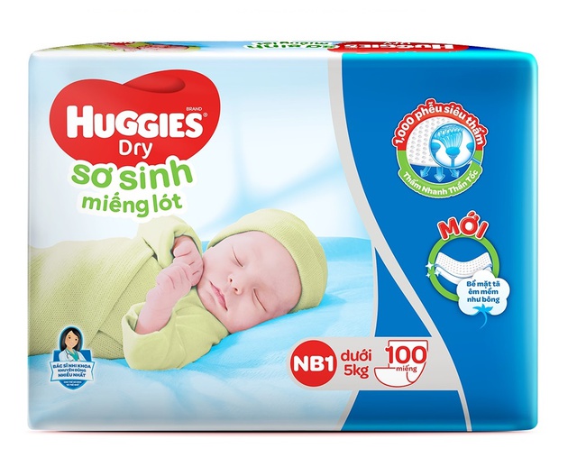 [Mã FMCG80 giảm 10% đơn từ 400K] Miếng lót Sơ Sinh Huggies NB1 100 miếng/gói