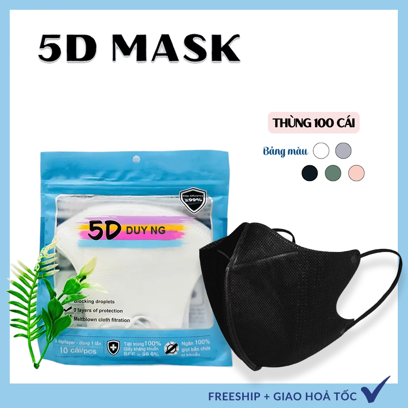 [ 10 Túi 100 Chiếc ] Khẩu Trang 5D 3 Lớp Chống Nắng Chống Bụi Chống Tia Uv
