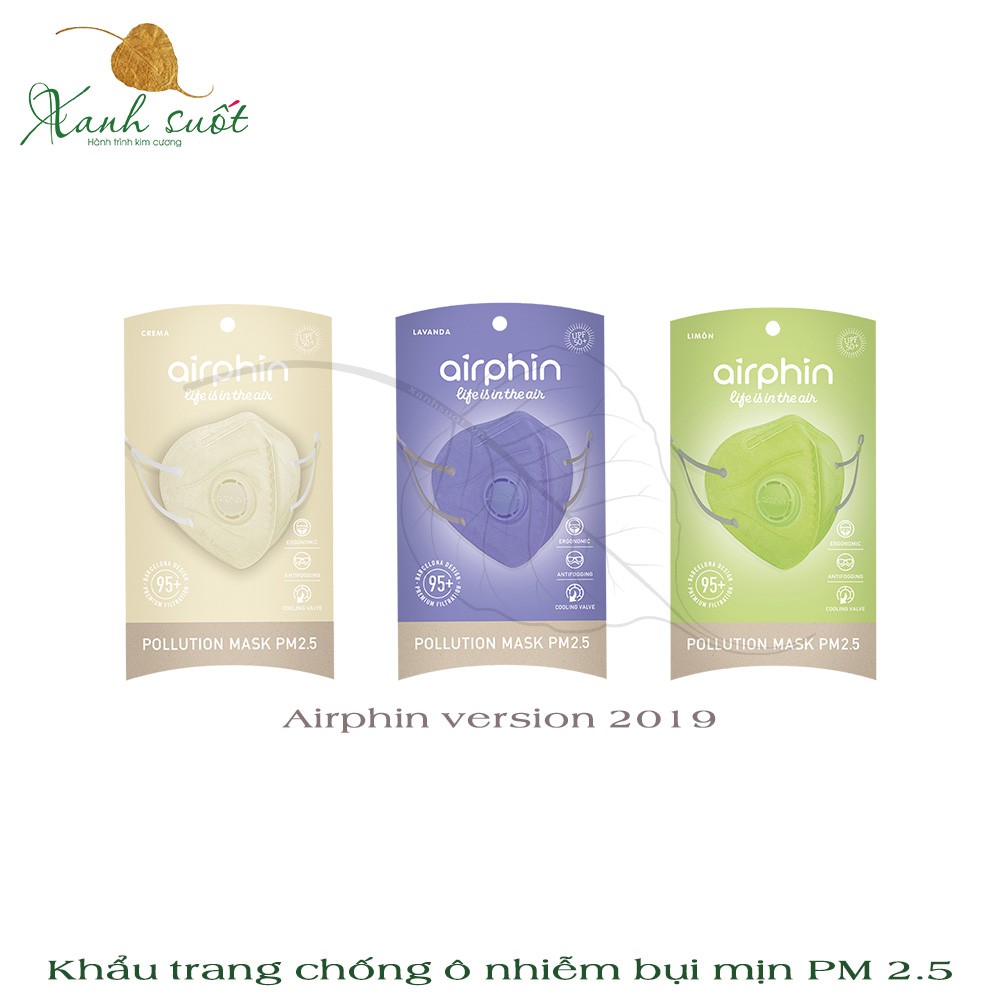 [Airphin] Khẩu Trang Người Lớn- Lọc Mùi & Bụi Mịn, Van 1 Chiều, Dễ Thở, Nhiều Màu Đẹp- Pollution Air Mask [Xanh Suốt]