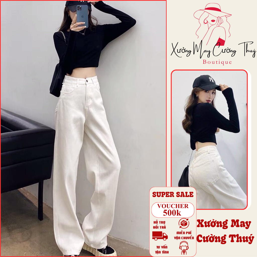 [BÁN SỈ] Quần Jeans Nữ Ống Rộng Màu Trắng – Siêu Hot, Siêu Cute, Form Chuẩn