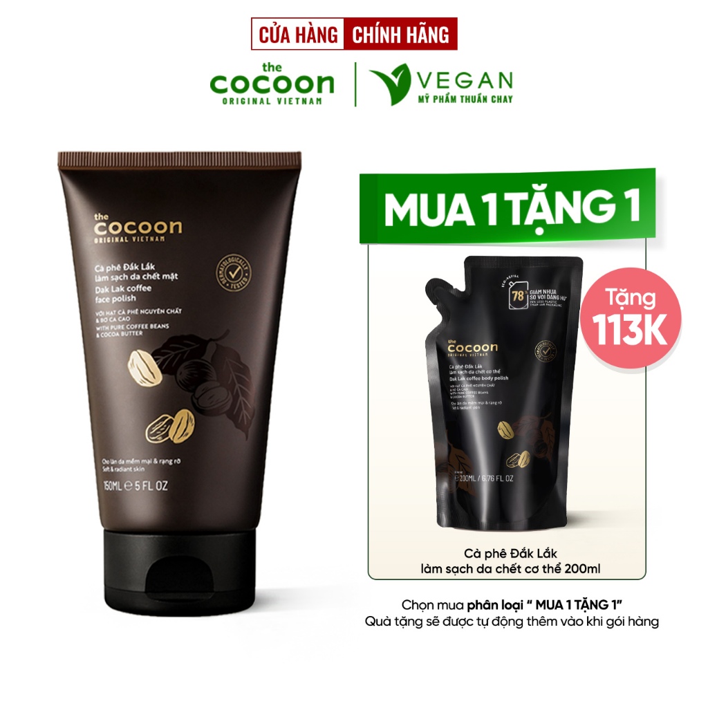Tẩy da chết mặt Cà phê Đắk Lắk làm sạch da mặt cocoon 150ml (Dak Lak coffee face polish ) thuần chay