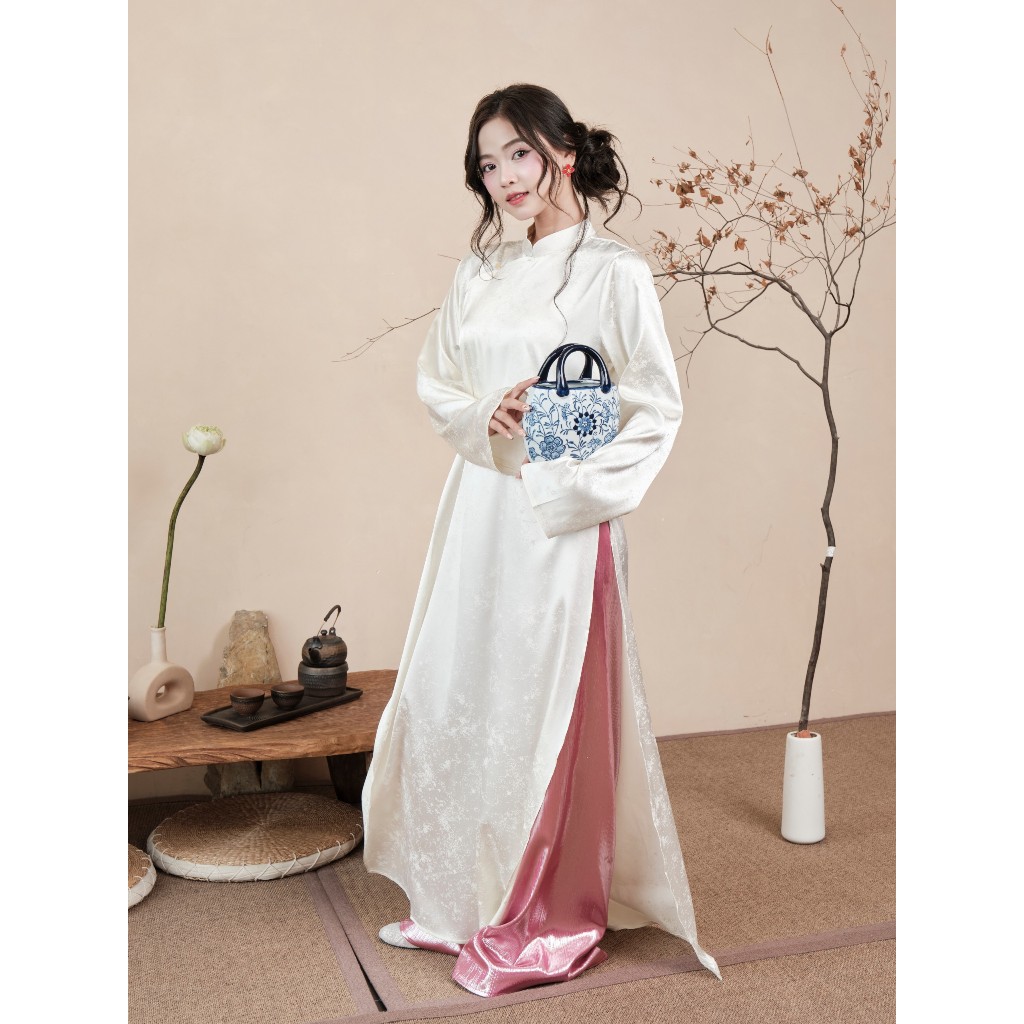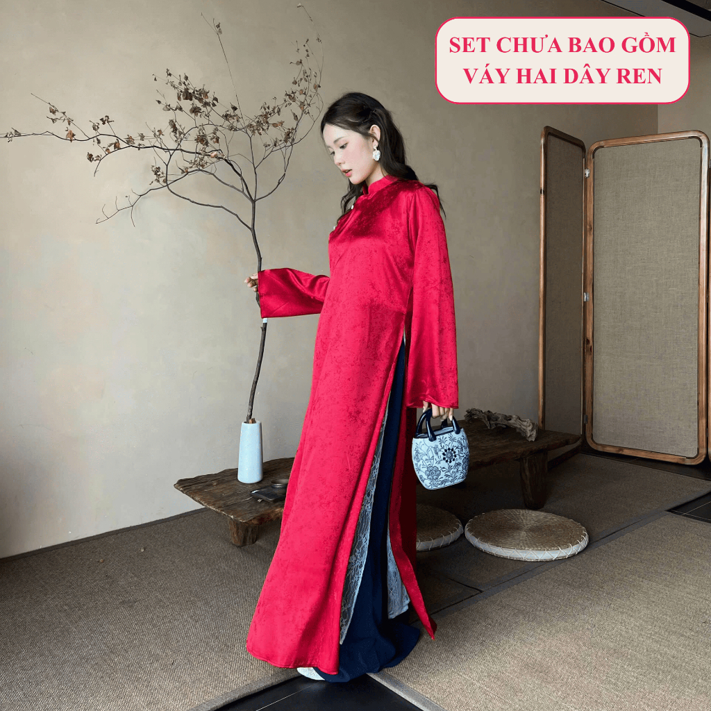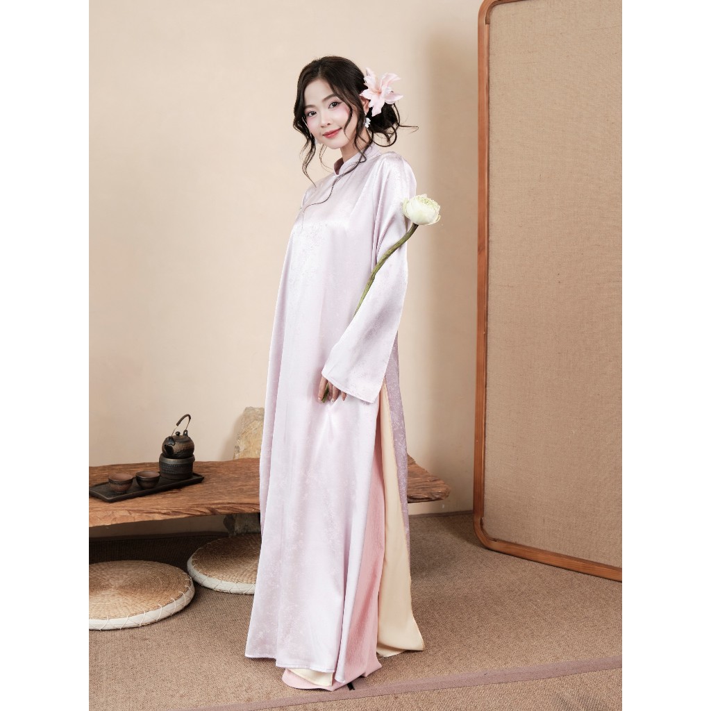 [BST TẾT 2026] Set áo dài HOA PHỐ ngũ thân vải lụa gấm hoạ tiết ánh sao m và quần cotton dáng suông ống rộng Wepretty