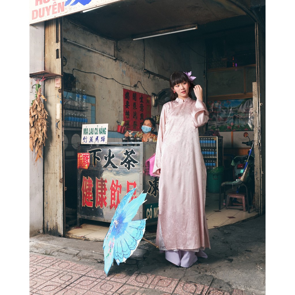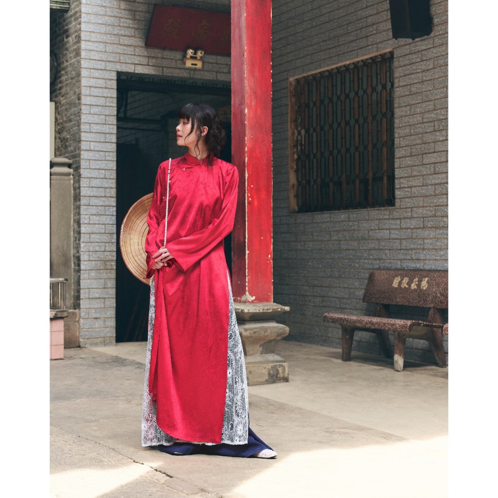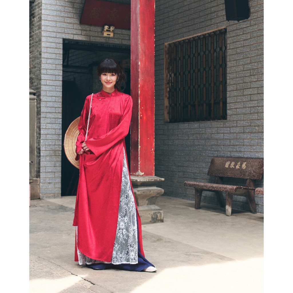 [BST TẾT 2026] Set áo dài HOA PHỐ ngũ thân vải lụa gấm hoạ tiết ánh sao m và quần cotton dáng suông ống rộng Wepretty