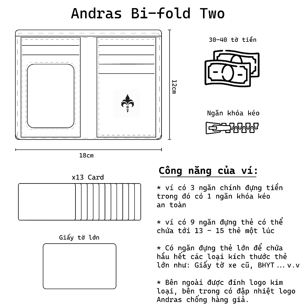 [Khắc Tên/Dập Nhũ] Ví nam da bò thật Mastrotto Bi-fold Two bóp nam cao cấp da nhỏ gọn Andras - V08