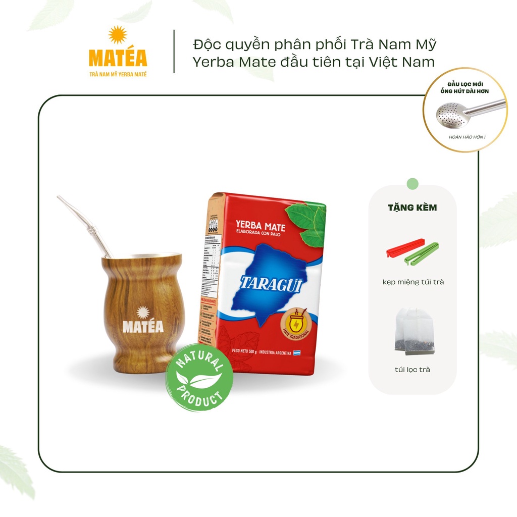 [DATE 5/2027] [COMBO] Trà Nam Mỹ Yerba Mate 500g TARAGUI vị Truyền Thống và Cốc Gourd kèm ống hút Bombilla