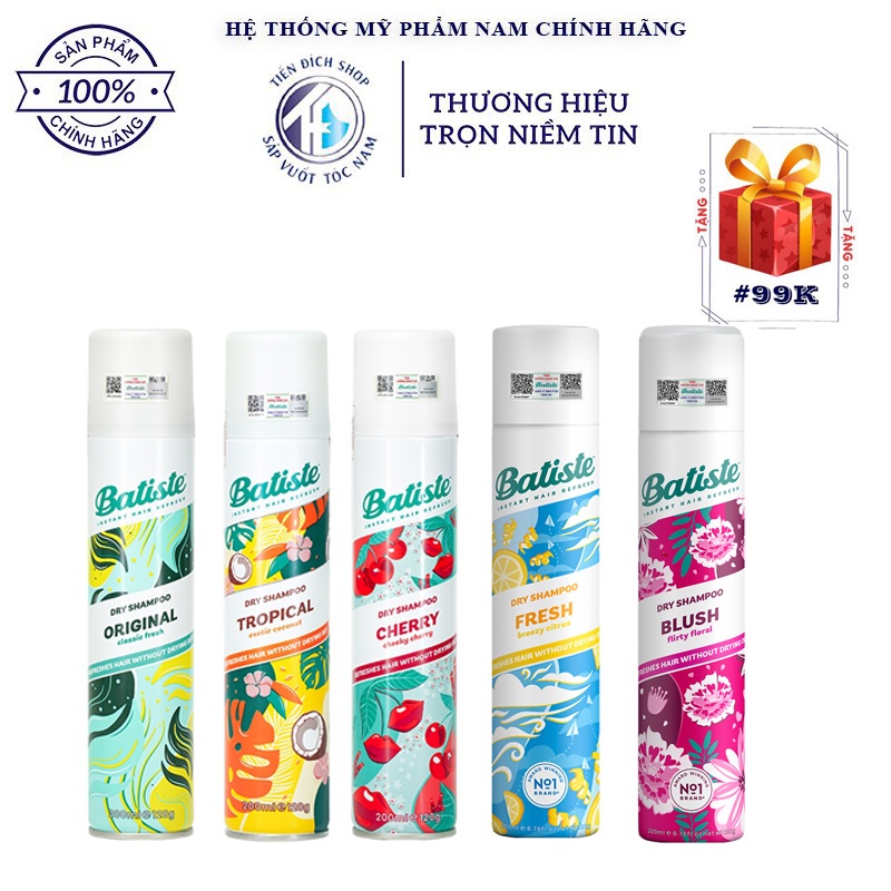 [Chính hãng] - Dầu gội khô Batiste 200ml | Anh + Tặng lược Chaoba