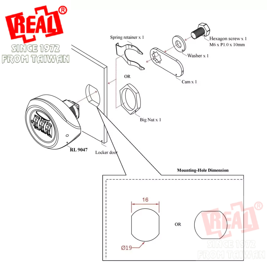 Ổ Khóa Số Tủ Locker REAL RL9047-07 | 3 Số Tròn, Đổi Mật Mã Nhanh, Tủ Dày Dưới 15mm