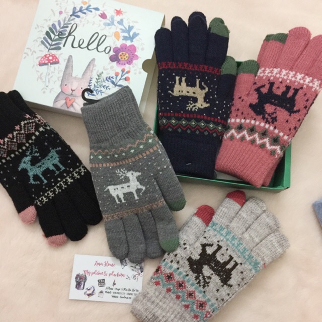[FREESHIP] Găng tay len nữ - họa tiết các loại