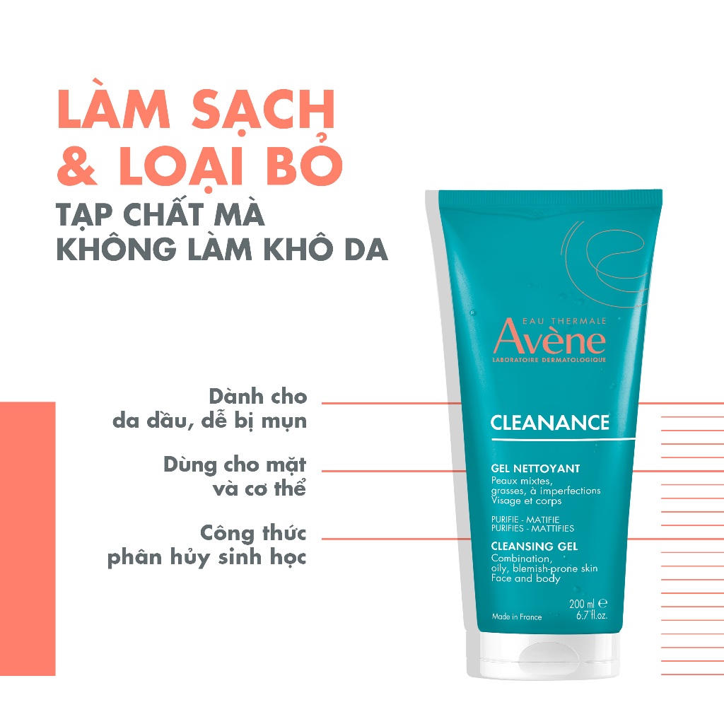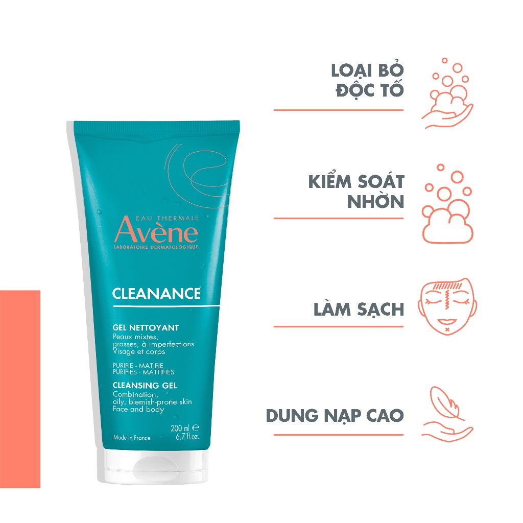 [FS] Gel rửa mặt cho da dầu mụn Eau Thermale Avène Cleanance Cleansing Gel 200ml dịu nhẹ, làm sạch bã nhờn