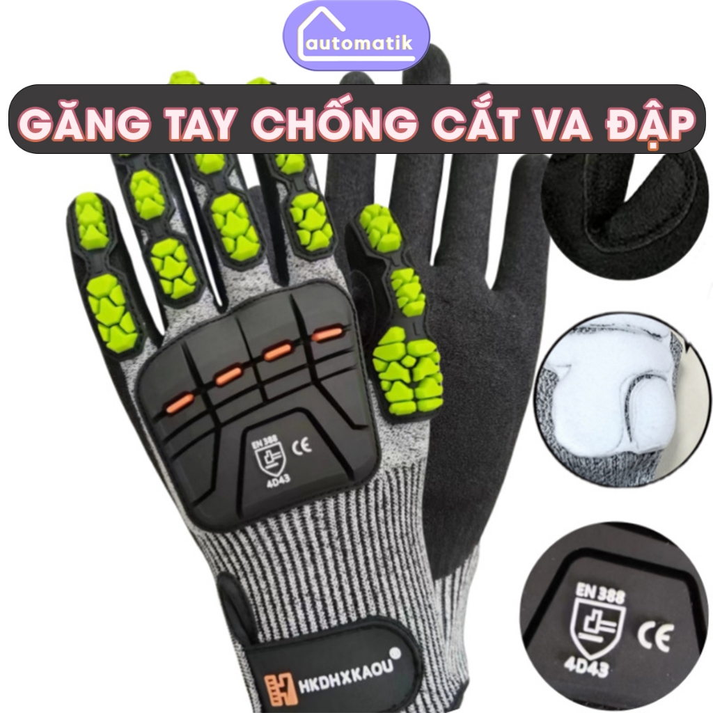 [G2] Găng Tay Chống Cắt Cách Điện Giật Automatik Va Đập Gai Đâm Thủng Nóng Cắt Kính Cấp Độ 5 Thực Phẩm