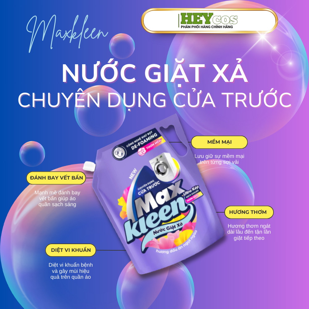 [HOẢ TỐC] Nước giặt xả MaxKleen 2.2kg - Khử Mùi, Diệt Khuẩn, Hương Hoa Dịu Mát