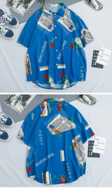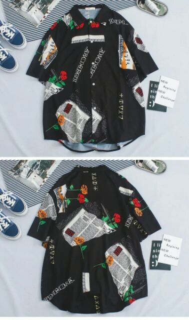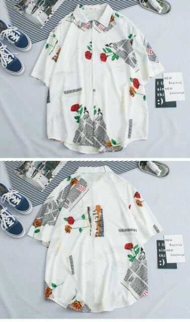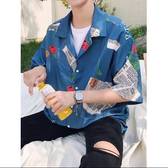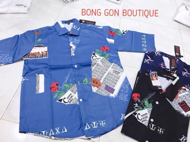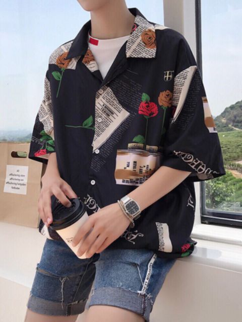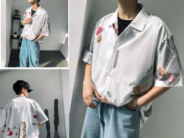 [Kèm ảnh thật] Áo Sơ Mi Lụa Nam Tay Lỡ Họa Tiết Tờ Báo, Bông Hồng In Nổi 3D [Lụa Thái] Hàng Cao Cấp