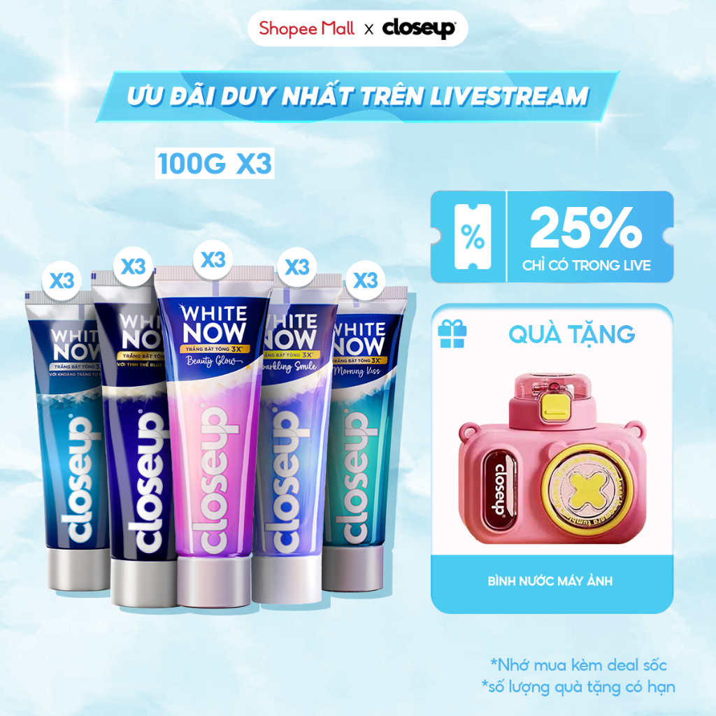 [LIVE] Bộ 3/6 Kem Đánh Răng Closeup trắng răng White Now Trắng Bật Tông 3X TỨC THÌ 100g