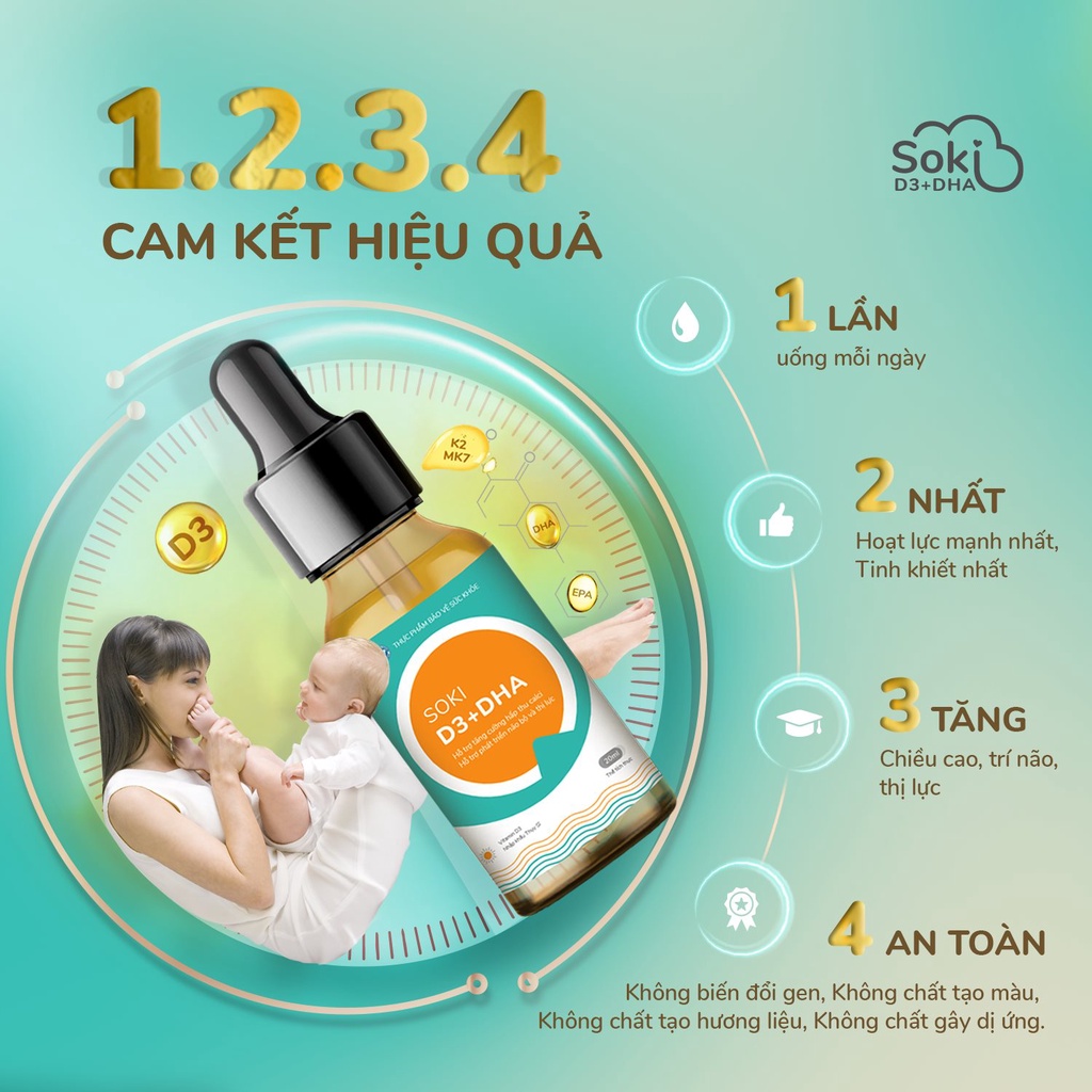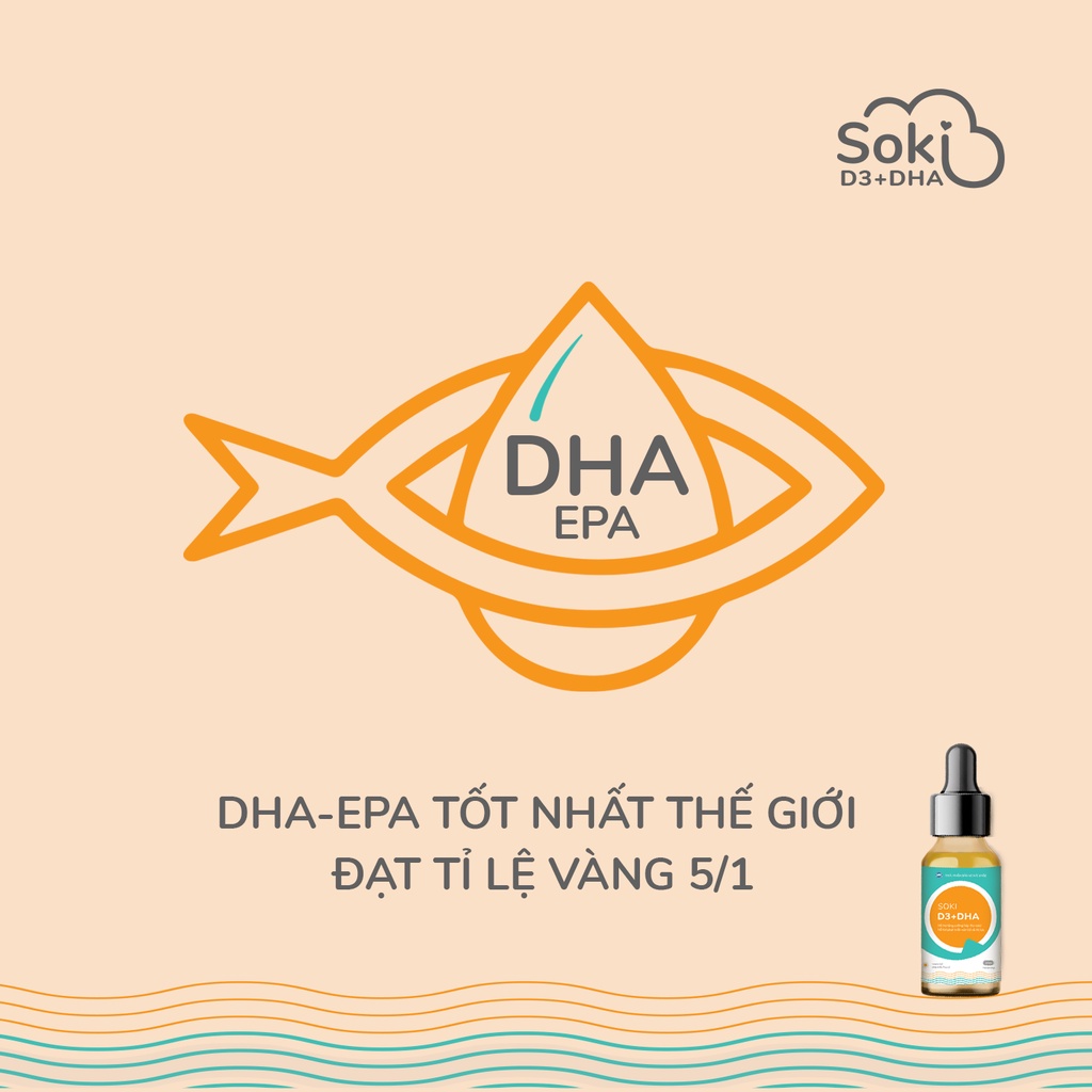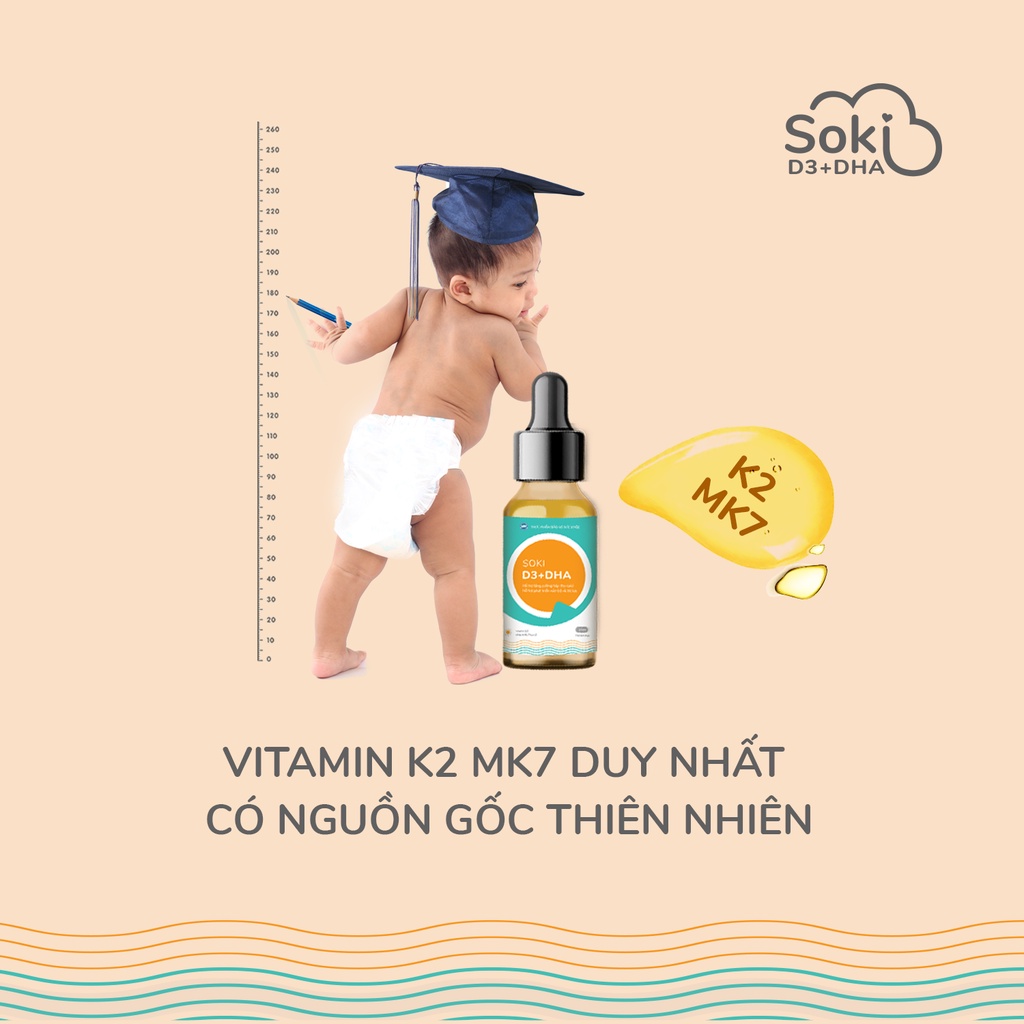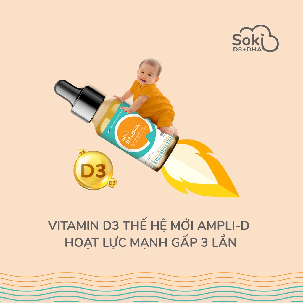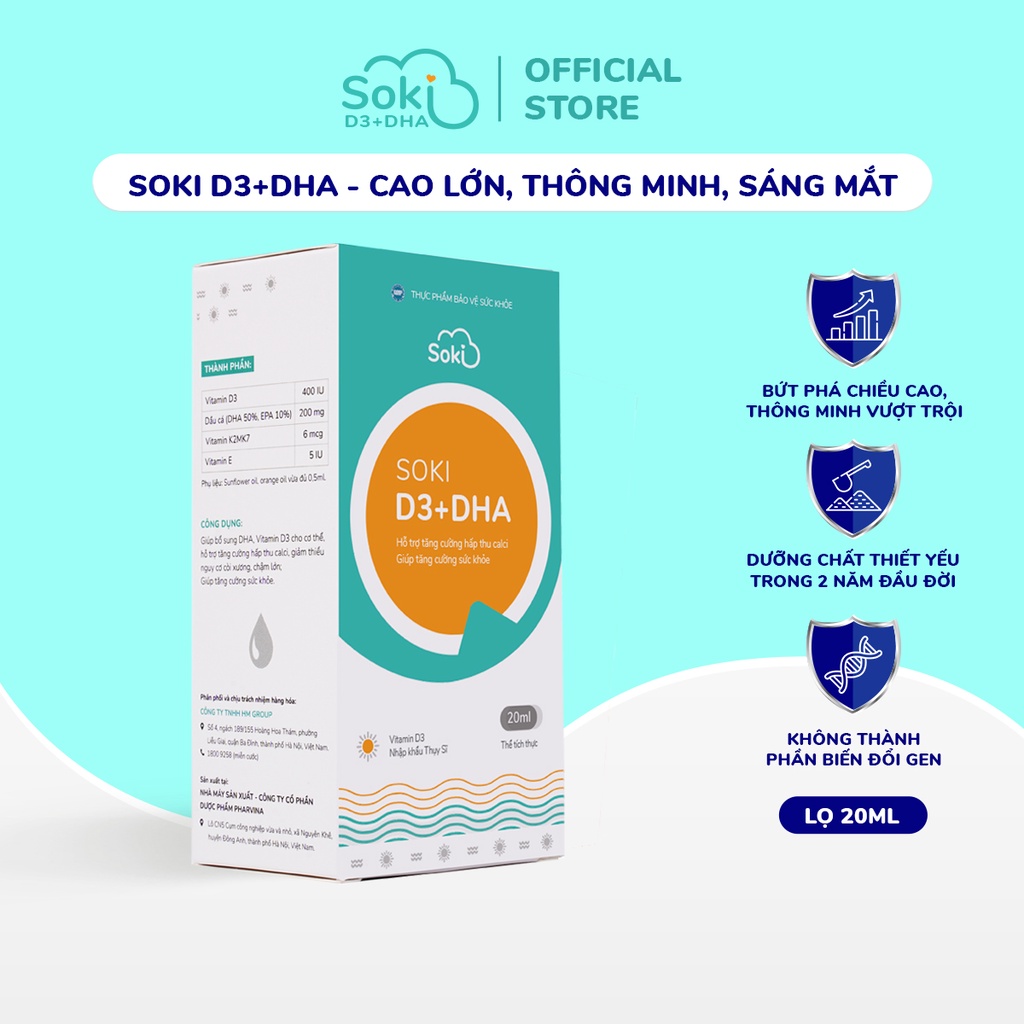 Siro SOKI D3+DHA Giúp Trẻ Hấp Thu Canxi, Tăng Chiều Cao, Phát Triển Trí Não Và Thị Lực Lọ 20ml