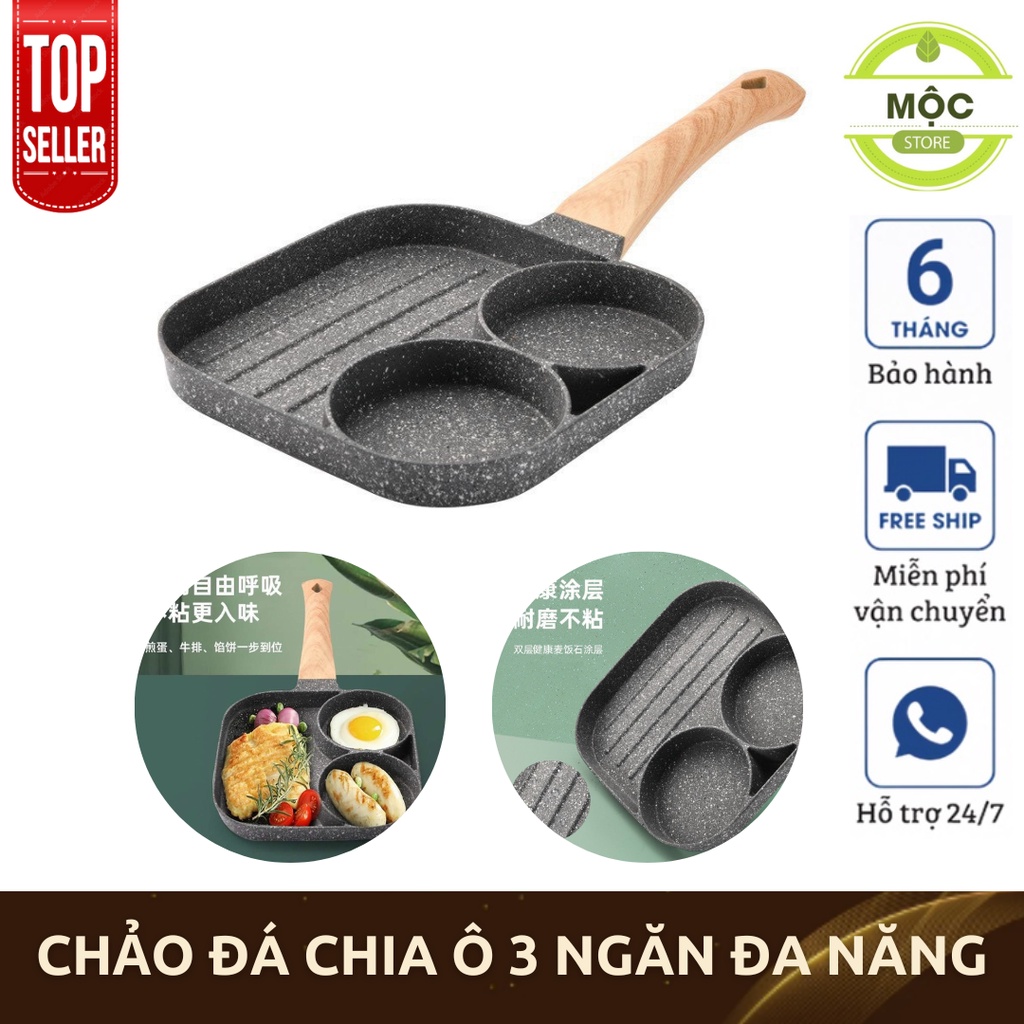 Chảo Đá Chia Ô 3 Ngăn Chiên Dán Đa Năng Chống Dính Tốt.